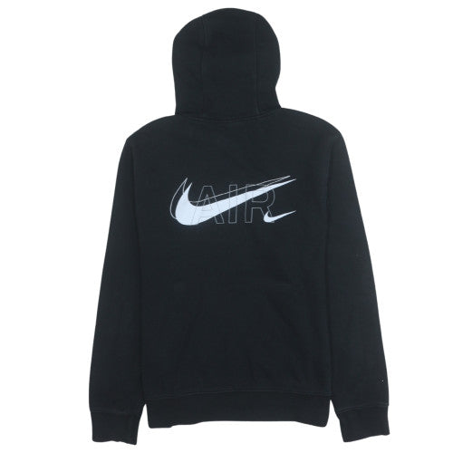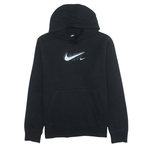 Upgrade your casual wardrobe with this Nike men's black pullover hoodie, designed for everyday comfort and sporty style. Crafted from a soft cotton and polyester fleece blend, this hoodie offers a gentle, brushed interior that keeps you warm and cosy throughout cooler days. The classic pullover style features a front kangaroo pocket for convenience, while the iconic Nike Air logo emblazoned across the chest and back adds a bold, athletic touch. With a relaxed regular fit, it’s perfect for layering over t-shirts when heading to the gym, going for a jog, or simply lounging at home. The roomy hood with a drawstring provides adaptable coverage against the wind and brisk air, making it a great all-season hoodie for autumn, winter, and mild spring days. Finished with ribbed cuffs and hem for a snug fit, this hoodie maintains its shape and durability through regular wear and washing. This versatile black Nike hoodie pairs easily with joggers, jeans, or shorts, fitting seamlessly into both sporty and streetwear outfits. Its machine washable fabric ensures easy care, and the high-quality construction guarantees lasting wear. In excellent pre-owned condition with minimal signs of use, this piece delivers authentic Nike style at a great value. A must-have for anyone seeking a dependable, everyday hoodie that combines comfort, functionality, and timeless athletic flair, whether you’re training, travelling, or relaxing. Bring home the trusted quality of Nike and elevate your casual look today with this essential black pullover hoodie.