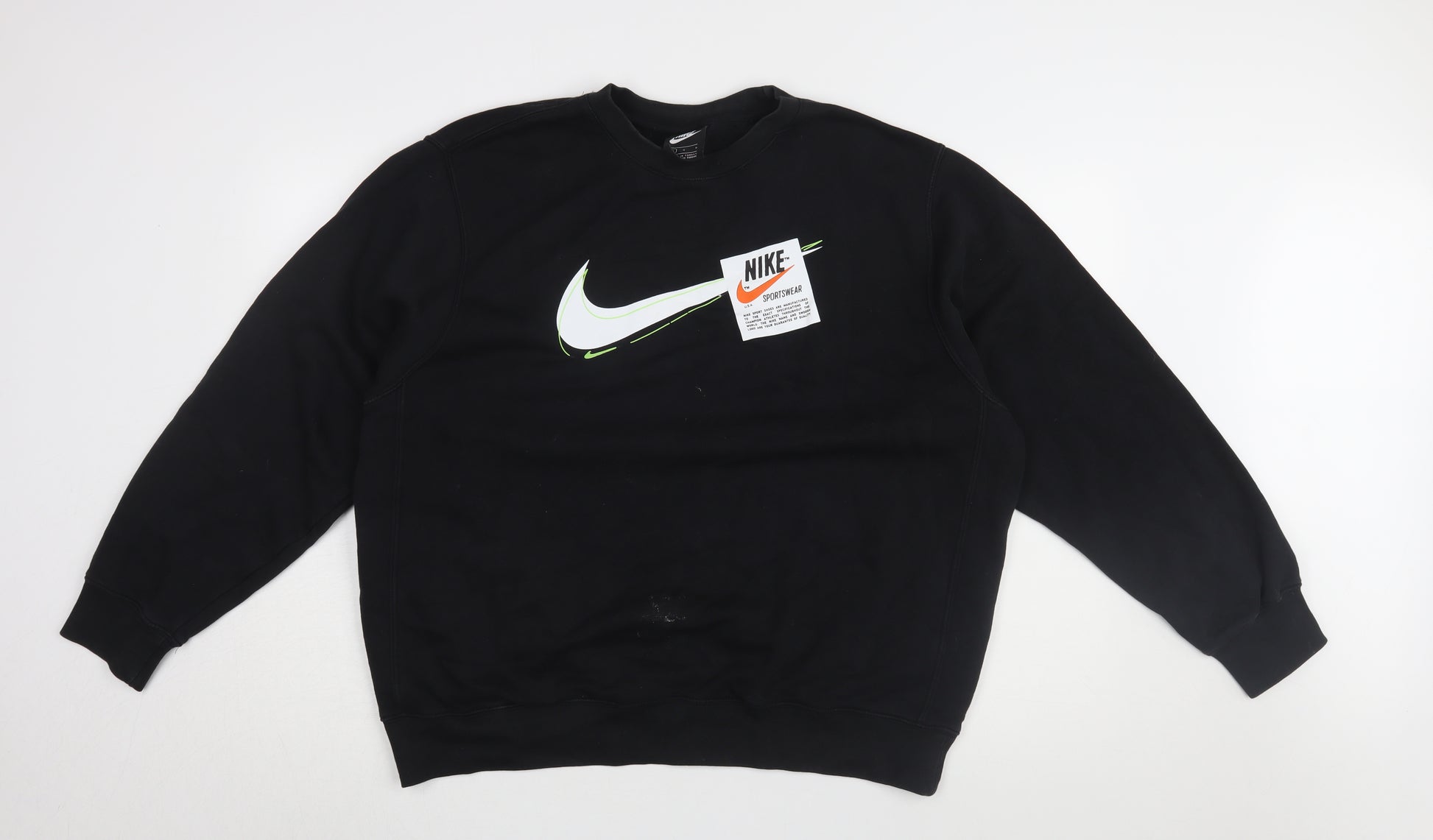 Elevate your wardrobe with this stylish Nike Men's Pullover Sweatshirt, a perfect blend of comfort and trend. Crafted in a versatile black, this sweatshirt features the iconic Nike logo that adds sporty flair to your everyday look. Designed with an emphasis on comfort, it boasts a regular fit and is made from a soft fleece fabric, comprising 80% cotton and 20% polyester, ensuring both warmth and breathability.The crew neck and long sleeves make it suitable for any casual outing or gym session, offering a classic pullover style that never goes out of fashion. Ideal for all seasons, this sweatshirt is engineered for both running and gym training, providing the functionality active men need. Whether you're heading for a morning jog or a casual day out, this sweatshirt remains a dependable choice.Beyond its sporty charm, this sweatshirt is machine washable, making garment care a breeze. Although it does have a small mark on the front, it remains in excellent condition, promising durability and long-term wear. Attractively priced, it presents a fantastic opportunity to own a piece of the iconic Nike brand without breaking the bank.Fashion-forward men will appreciate the understated yet impactful design, making it a staple piece that can easily transition from gym wear to casual attire. Don't miss your chance to add this classic Nike pullover sweatshirt to your collection, ensuring you stay stylish and comfortable all year round. Perfect for university students, casual gatherings, or individual sport enthusiasts, it's a versatile addition that aligns with any active lifestyle.