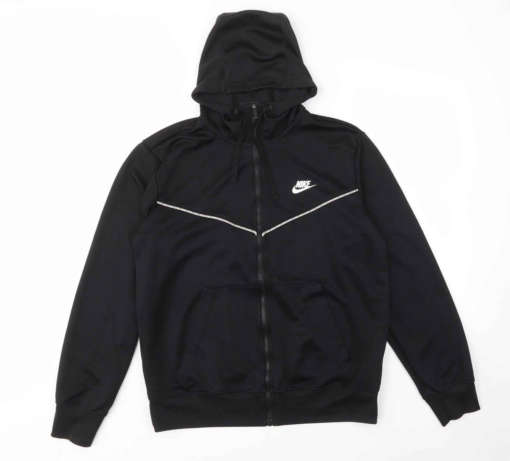 Mens Black Polyester Full Zip Hoodie Size L - Logo, Pockets