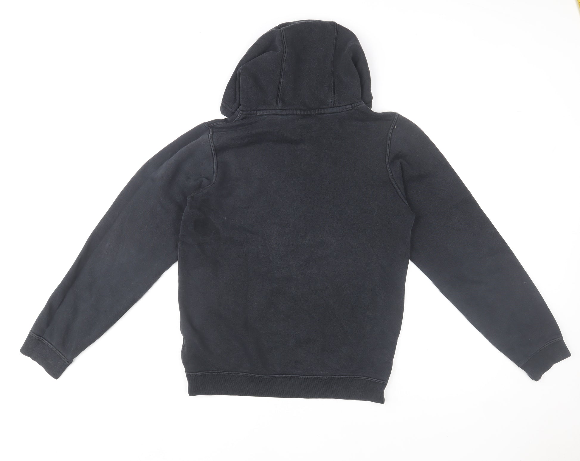 This Nike men’s black pullover hoodie offers the perfect balance between sporty appeal and everyday comfort. Designed in a regular fit, this classic hoodie is crafted from a soft cotton and polyester fleece blend that provides warmth without feeling heavy. The cosy fleece interior ensures comfort throughout the cooler months, while the durable outer fabric stands up to regular wear. A practical kangaroo pocket adds functionality, ideal for keeping hands warm or storing small essentials. The signature Nike logo is tastefully embroidered on the chest, giving the hoodie its instantly recognisable sporty edge.The versatile pullover design features long sleeves, a crew neckline, and a spacious hood with drawstrings for adjustable coverage. This hoodie is ideal for gym sessions, running errands, or lounging at home. Its plain black finish ensures effortless styling — pair it with joggers for a casual look or with jeans for a sporty streetwear ensemble. Machine washable and easy to care for, this wardrobe staple combines Nike’s iconic quality with timeless design.Condition-wise, the hoodie remains in good used shape, showing only a small hole near the front pocket that does not affect wear or durability. The hoodie retains its shape, colour, and softness, making it a reliable addition to any casual wardrobe. Whether you’re looking to refresh your sportswear rotation or seeking a comfortable all-season layer, this Nike fleece hoodie provides outstanding value and versatile appeal. Perfect for colder days and active lifestyles alike, this essential piece delivers authentic Nike comfort and effortless style every time you wear it.