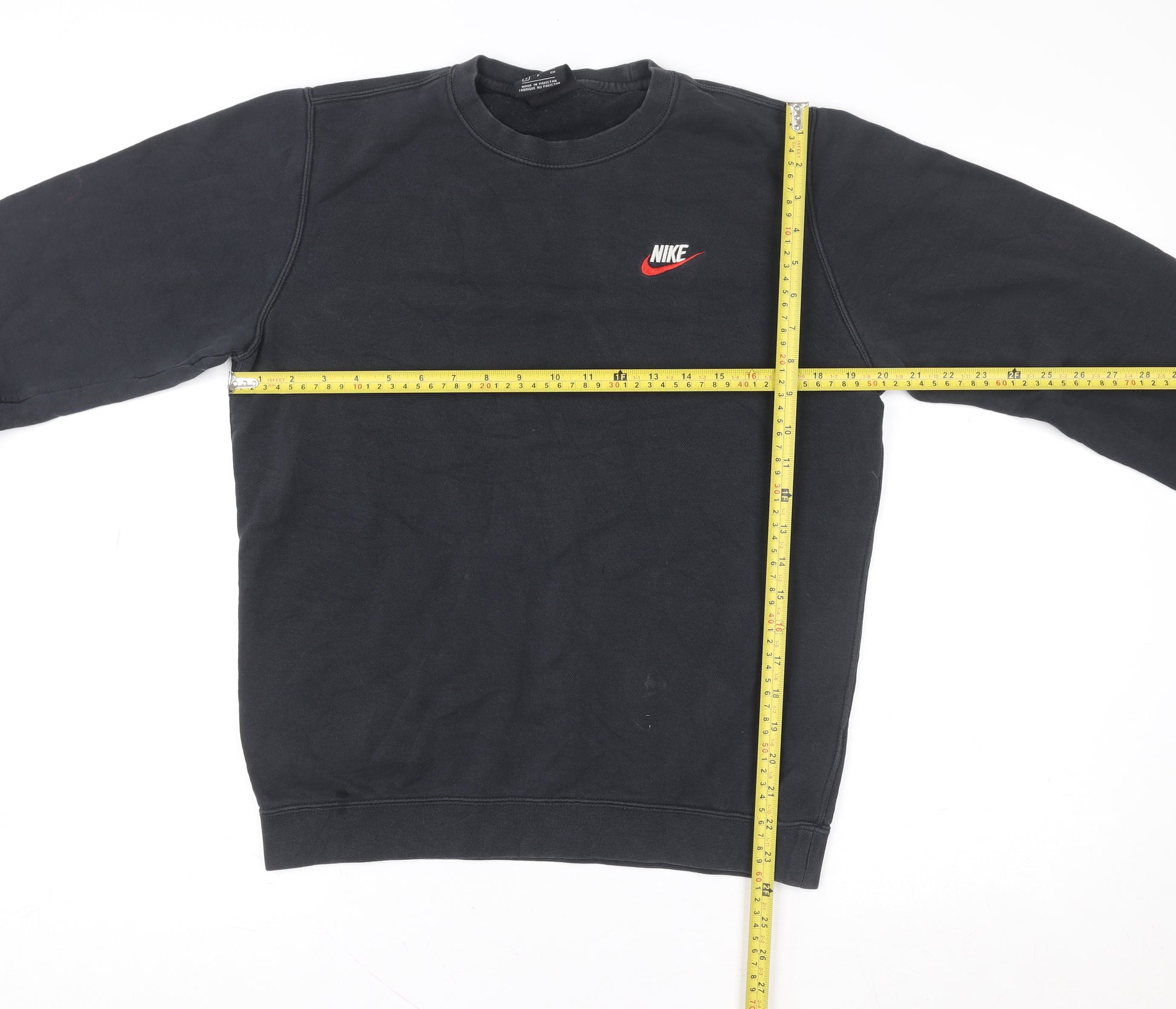 Elevate your casual wear with this classic Nike Men's Black Pullover Sweatshirt, crafted for everyday comfort and timeless sporty style. Made from a soft and durable fleece blend of 80% cotton and 20% polyester, this premium sweatshirt offers a cosy and breathable fit, perfect for all seasons. The simple crew neck design and clean black colourway provide a versatile base for any wardrobe, while the signature embroidered Nike logo on the chest adds a refined athletic touch. Designed with long sleeves and ribbed cuffs and hem, this sweatshirt ensures a secure and comfortable fit that maintains shape over time. Ideal for layering during cooler months or wearing on its own for a relaxed look, it pairs effortlessly with jeans, joggers, or shorts. Versatile enough for gym sessions, casual outings, or lounging at home, it embodies Nike’s iconic balance of style, comfort, and performance. Carefully inspected to ensure excellent quality, this used sweatshirt remains in very good condition, with only light signs of wear that do not affect its appearance or comfort. Its regular fit ensures a flattering and comfortable look for a variety of builds, suited particularly for men who value durable, stylish everyday essentials. Machine washable for hassle-free care, it’s a practical piece built to last in both fashion and functionality. Add a touch of iconic sportswear to your wardrobe with this Nike sweatshirt – a timeless go-to for both athletic and casual settings. Whether heading out for training, meeting friends, or staying cosy at home, this sweatshirt delivers reliable comfort, style, and the unmistakable quality of the Nike brand.