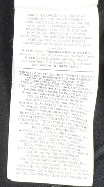 Elevate your casual wardrobe with this Nike men's pullover hoodie, crafted for both style and comfort. In a versatile black colour, this hoodie is designed with a signature logo accent and features a classic pullover style with a hood for added warmth. Made from a blend of 76% cotton and 24% polyester, it offers a soft fleece feel perfect for cooler days. The long sleeves and regular fit make it suitable for layering, ensuring you stay cosy in all seasons.Ideal for everyday wear, this hoodie combines practicality with a trendy aesthetic, appealing to men looking for reliable comfort and iconic branding. Whether for a casual outing or a relaxed evening indoors, its machine washable care instructions ensure easy maintenance. The subtle design makes this piece easy to pair with jeans or joggers, making it a great addition to any modern wardrobe.Although gently used, this hoodie is in excellent condition with no visible flaws, promising durability and continued wear. Embrace the effortless style of Nike with this must-have pullover hoodie.