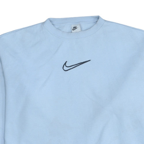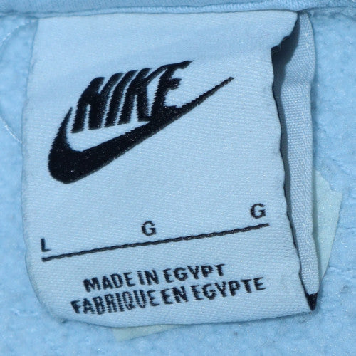 Upgrade your casual wardrobe with this classic Nike men's blue sweatshirt, perfect for layering across seasons. Constructed from a comfortable blend of cotton and polyester, this crew neck pullover offers a soft fleece interior that delivers warmth without sacrificing breathability. Designed for regular fit comfort, it features the iconic Nike logo embroidered on the chest, giving it that instantly recognisable sporty edge. Its long sleeves, ribbed cuffs, and hemline ensure a secure and versatile fit, while the sky-blue tone brings a fresh, clean look to any outfit. Ideal for men who want both comfort and effortless style, this sweatshirt works perfectly for everyday wear, lounging, or light training. With its all-season design and breathable fabric, it’s suitable for layering under jackets in the colder months or wearing on its own during milder days. Made in Egypt and finished with Nike’s quality craftsmanship, this sweatshirt holds up well even with frequent washes. Conditioned in very good pre-owned shape, showing only minimal signs of gentle use, it stands as a lightly worn piece that still retains its original softness and vibrant colour. Whether you’re pairing it with jeans, joggers, or sporty trainers, this sweatshirt will easily become a go-to staple in your wardrobe. A true representation of Nike’s athletic heritage, it reflects both performance and lifestyle appeal, making it ideal for men who appreciate understated style with functional comfort. Grab this Nike crew neck sweatshirt today and enjoy that classic blend of sporty design, everyday practicality, and premium fleece comfort all in one versatile piece.