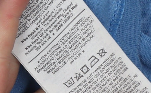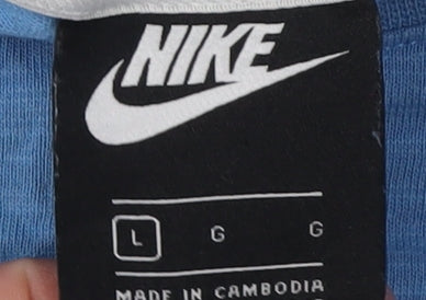 Elevate your casual wear with this classic Nike men's T-shirt, perfect for everyday use or athletic activities. Crafted from 100% cotton, this solid blue tee offers both comfort and style. The crew neckline and short sleeves make it an ideal choice for all seasons. With a striking Nike logo accentuating the front, this shirt adds a touch of sporty elegance to your wardrobe. Although it has a faint stain on the front, it remains in good condition and offers the reliability and quality you expect from Nike. Whether pairing it with jeans for a day out or with shorts for a workout, this versatile piece ensures you're always dressed to impress. Give your wardrobe a fresh update with this essential T-shirt.
