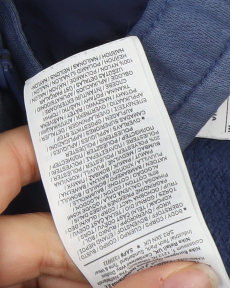 These Nike men’s blue jogger sweatpants offer unbeatable comfort and sporty style, perfect for active and casual wear. Crafted from a soft French terry fabric blend of 80% cotton and 20% polyester, they provide a breathable yet cosy feel that’s ideal for gym sessions, running errands, or relaxing at home. The joggers feature a tapered leg design for a modern silhouette, while the elasticated waistband and functional drawstring ensure a secure and adjustable fit. A discreet zip pocket adds practical storage for essentials like keys or cards during workouts. Finished with the classic red Nike logo, these joggers combine performance appeal with everyday versatility. Designed for regular fit and movement ease, the material offers a hint of stretch that enhances flexibility and comfort. Suitable for multiple seasons, particularly autumn, spring, and winter, these trousers balance warmth with breathability. The sporty design captures Nike’s commitment to quality activewear, blending fashion and performance seamlessly. While pre-owned in very good condition, they show only minor signs of wear, including slight fading and small marks that do not detract from overall appearance or function. Machine washable for easy care, these joggers are ideal for those who value durable activewear that looks as good as it feels. Whether you’re hitting the gym, going for a run, or lounging in style, these Nike joggers are a reliable choice that offers both comfort and timeless sportswear appeal at an excellent value.