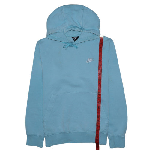 Stay effortlessly stylish and comfortable with this men’s Nike blue pullover hoodie. Crafted from a soft cotton-polyester fleece blend, the hoodie offers a cosy yet breathable feel—ideal for layering through the cooler months of autumn, spring, and winter. The classic design includes a spacious hood with an adjustable drawstring closure, a practical front kangaroo pocket, and long sleeves finished with ribbed cuffs and hem for a secure, snug fit. This hoodie features a minimalistic look, highlighted by the iconic Nike logo on the chest for a touch of athletic authenticity. Its regular fit delivers a comfortable silhouette, allowing easy movement whether you’re out on a casual day, training at the gym, or relaxing at home. Designed with an all-season fleece fabric, it provides warmth without heaviness, while the crew neckline enhances comfort and wearability. The colour—a refreshing soft blue—makes it an appealing addition to any casual wardrobe, easily paired with jeans, joggers, or shorts for a laid-back look. Though lightly worn with minor marks near the hem, the overall condition remains very good, retaining excellent shape and fabric quality. Machine washable for easy care, this hoodie embodies Nike’s commitment to durable, athletic-inspired design. Ideal for everyday wear, sports activities, or leisure time, it brings together practicality, quality, and iconic style in one timeless piece. Perfect for those who appreciate comfort and classic simplicity, this Nike men’s hoodie is a must-have essential for the modern wardrobe.