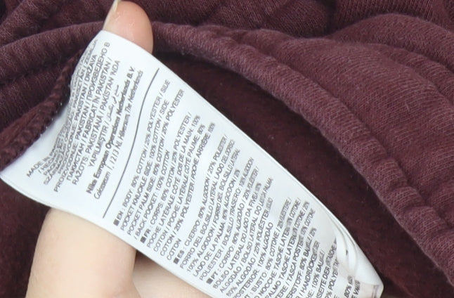 Stay comfortable and stylish with these Nike Men's Brown Fleece Jogger Sweatpants, crafted for both performance and relaxation. Designed in a rich brown shade, these joggers are perfect for everyday wear or active pursuits such as gym training, running, or casual walks. Made from a soft cotton and polyester fleece fabric, they offer warmth and comfort across multiple seasons — particularly ideal for autumn, winter, and spring. The joggers feature a regular fit with a tapered leg for a modern silhouette, complete with ribbed cuffs and an elasticated waistband with a drawstring closure for a snug, adjustable fit. The side pockets offer convenient storage for essentials, while the overall construction ensures breathable comfort during movement. These sweatpants reflect the athleisure trend perfectly, balancing sporty utility with casual appeal. The Nike branding provides an iconic finish that ensures quality and timeless streetwear appeal. Although gently used and showing a small hole near the cuff, the joggers remain in good wearable condition with plenty of life left. Ideal for layering over training gear or pairing with hoodies, tees, or sweatshirts for a laid-back yet active look. Easy to care for and machine washable, these Nike joggers are a wardrobe staple for anyone seeking performance wear with everyday versatility. Whether you’re off to the gym, relaxing at home, or heading out casually, these fleece joggers deliver reliable comfort and understated style that fits effortlessly into any modern wardrobe. Priced affordably to reflect their used condition, they present an excellent opportunity to own quality Nike apparel built for comfort, function, and everyday wear.