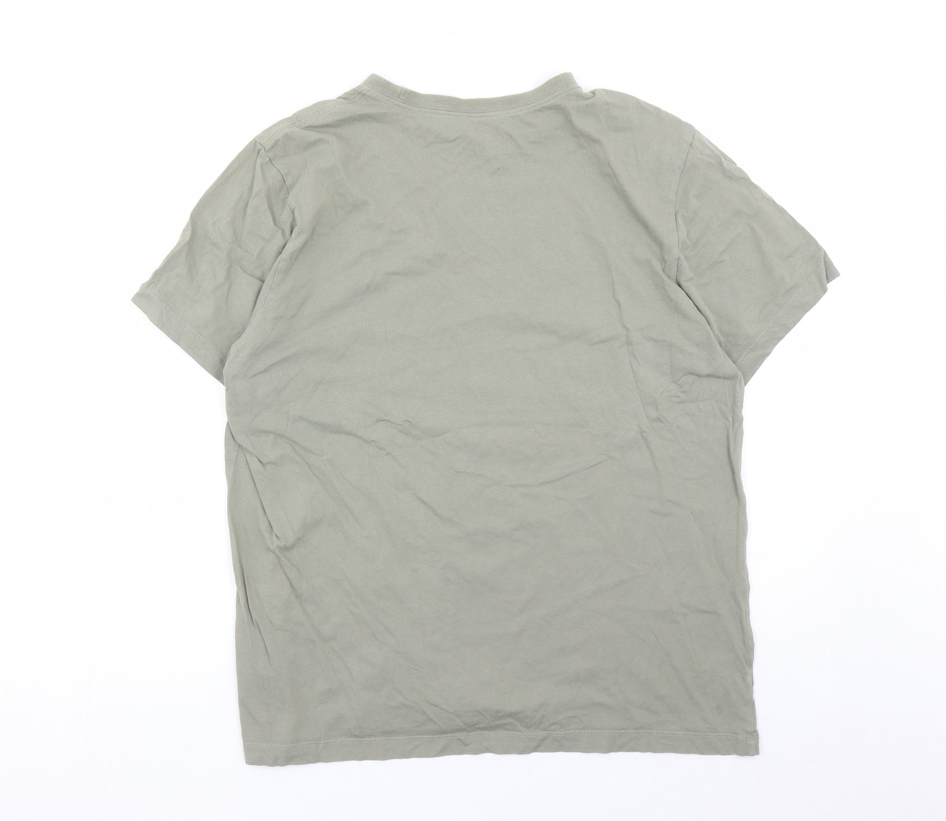 Mens Green Cotton Basic T-Shirt Size L Crew Neck Pullover