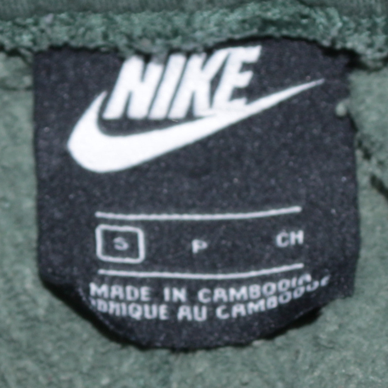 Step into effortless comfort and athleisure style with these Nike Men's Green Fleece Sweatpants in size Small. Designed in a timeless green shade, these trousers feature the iconic Nike logo embroidered on the front, adding an authentic sportswear finish. Crafted from a soft fleece blend of 80% cotton and 20% polyester, they offer warmth and breathability—perfect for cooler autumn and winter days or relaxing casual wear. The regular fit ensures all‑day comfort while maintaining a modern silhouette, enhanced by tapered legs and elasticated cuffs for a snug, streamlined look. The elastic waistband provides flexible comfort, allowing for ease of movement during workouts, travel, or lounging, while handy slash pockets elevate everyday practicality. Built for versatility, these Nike sweatpants complement any casual wardrobe, pairing effortlessly with trainers and hoodies for classic streetwear styling. Machine washable for easy care, they remain practical and durable for regular use. Ideal for both everyday wear and light active pursuits, they fit seamlessly into modern, relaxed lifestyles. Overall, these men’s Nike fleece trousers combine quality craftsmanship, comfort, and understated design to enhance your casual look. In very good pre‑owned condition with only minor fading consistent with light use, they still retain all the hallmark comfort and style you’d expect from Nike’s heritage of athletic apparel. Whether you wear them for weekend downtime, gym sessions, or travel, these joggers deliver dependable style and comfort in equal measure at an excellent value.