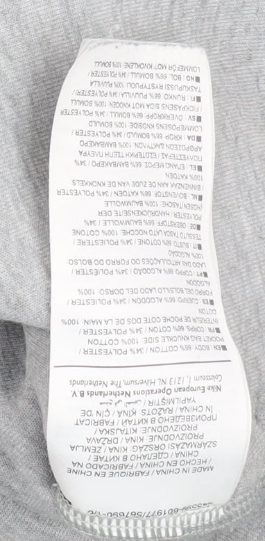 These Nike Men's Grey Jogger Sweatpants combine everyday comfort with athletic style, offering a versatile option for workouts, lounging or casual wear. Made from a soft and breathable knit fabric blend of 66% cotton and 34% polyester, these trousers ensure a comfortable and flexible fit. The classic jogger style is complemented by a practical drawstring at the waist and tapered legs for a modern silhouette that remains easy to move in. Ideal for gym sessions, running or relaxed days, they strike the perfect balance between performance and comfort. The elastic waistband enhances fit security, while the practical side pockets provide convenience for carrying small essentials like keys or cards. Presented in a neutral grey shade, these activewear trousers can pair easily with various tops, trainers and hoodies to complete an athletic-inspired outfit. Suitable for spring and autumn layering or indoor training through winter, they offer dependable wearability across multiple seasons. Though these joggers show light marks on the lower leg area, they remain in good overall condition with plenty of life left. Versatile, soft and designed for function, this pair of Nike joggers represents understated sportswear style with a trusted brand name at an affordable price, perfect for anyone looking to upgrade their casual athletic wardrobe with reliable Nike quality.