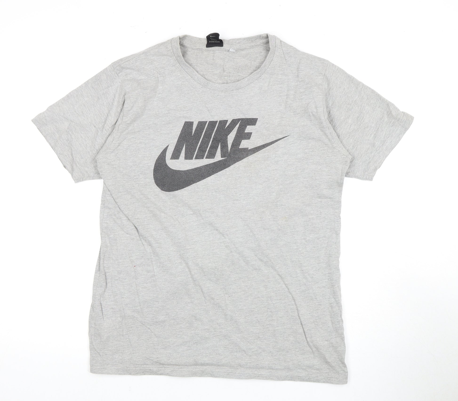 Elevate your casual wardrobe with this classic Nike T-shirt designed for everyday comfort. This grey tee, emblazoned with the iconic Nike logo, offers a timeless design suitable for any season. Crafted from a balanced blend of 50% cotton and 50% polyester, the material ensures a soft feel against your skin while maintaining durability. With its crew neck and short sleeves, this T-shirt is perfect for layering or wearing alone on warmer days. Its solid grey color adds a versatile touch, pairing effortlessly with jeans, shorts, or joggers. Designed with the modern man in mind, this Nike T-shirt is machine washable, making it as convenient as it is stylish. Whether you're heading to the gym, running errands, or simply lounging at home, this T-shirt is your go-to choice for comfort and style. Don't miss the chance to add this essential piece to your collection at an unbeatable price.