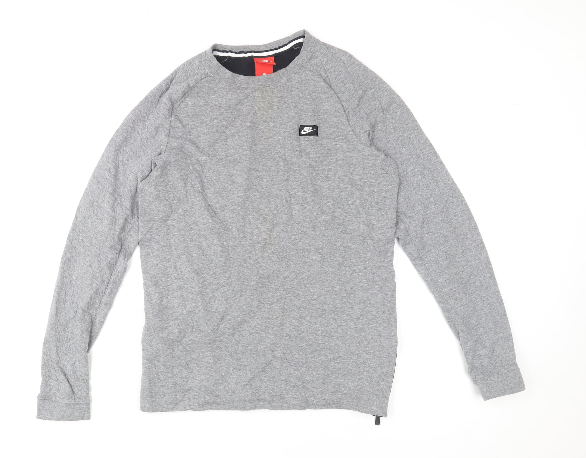 This Nike Men's Grey Long Sleeve Pullover Sports T-Shirt is designed to deliver everyday comfort and athletic style. Crafted from a high-quality cotton and nylon blend, the top offers a soft feel with just the right amount of durability for active use. The jersey fabric ensures a breathable and lightweight fit, making it perfect for gym training, running, and casual wear. The regular fit silhouette is complemented by raglan sleeves, allowing for easy movement during performance activities. This top features a crew neckline and a solid grey colourway, offering a clean, versatile aesthetic that works well for active days and relaxed moments alike. The discreet Nike logo accent on the chest adds a touch of iconic style, while the small side zip detail provides a subtle sporty edge. Designed for wear during autumn, spring, and winter, this long sleeve top can be layered easily for extra warmth or worn alone for a sleek look. With machine washable care for everyday convenience and strong construction for long-term use, this piece embodies Nike’s commitment to both comfort and performance. Though pre-owned, it remains in very good condition with only minimal signs of wear and slight fading to the front, ensuring it still looks and feels great. Ideal for those who value both functionality and style, this Nike sports top is a reliable wardrobe option for training sessions, casual outings, or lounging in comfort. Whether you’re heading to the gym or simply enjoying a laid-back day, this pullover ensures you stay comfortable without compromising on athletic appeal.