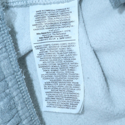 Refresh your casual wardrobe with these stylish Nike Men's Grey Regular Fit Fleece Sweatpants in size Large. Designed for comfort and versatility, these jogger-style trousers feature an elasticated waist with a drawstring closure and a soft fleece interior to keep you warm and comfortable throughout the day. The mid-rise fit and tapered leg offer a modern silhouette, while the stretch cotton-blend fabric ensures easy movement whether you’re lounging, training, or running errands. Constructed from a durable and cosy combination of 80% cotton and 20% polyester, these joggers provide breathability with a soft touch against the skin. The two side slash pockets offer practical storage for small items like keys or your phone, while the subtle Nike logo on the front adds a sporty branded detail without being overpowering. Perfect for cooler seasons, their lightweight yet insulating fabric makes them a perfect choice for autumn, winter, and early spring wear. These fleece sweatpants are ideal for casual and athleisure outfits, pairing easily with hoodies, T-shirts, and trainers for a laid-back Nike look. The elastic waistband provides a snug fit without restriction, and the ribbed ankle cuffs maintain clean lines for a polished yet relaxed finish. In very good pre-owned condition with minimal signs of wear, these sweatpants retain their original shape and colour, showing only slight linting typical of fleece materials. Machine washable for easy care, they’re practical for everyday use and stylish enough for travel or weekend wear. If you’re looking for comfort-driven balance of classic Nike performance with understated style, these sweatpants fit the bill for any casual setting. A versatile and quality addition to any active or leisurewear collection.