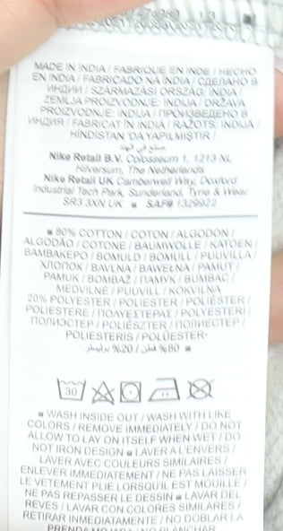 Stay comfortable and stylish with these Nike men’s grey sweatpants, crafted from a soft and breathable cotton-polyester blend. Designed for everyday wear, these joggers feature a mid-rise elasticated waistband with an adjustable drawstring for a secure, personalised fit. The tapered leg design with cuffed hems ensures a clean, modern silhouette that's perfect for both lounging and active use. Functional slash pockets offer practical storage without compromising the streamlined look, while the iconic Nike logo on the upper leg adds a subtle sportswear touch. Made from 80% cotton and 20% polyester fleece, these trousers deliver warmth and comfort whether you’re relaxing at home, travelling, or heading to the gym. Their regular fit provides easy movement, while the soft interior gives a premium feel. Suitable for cooler months, they are ideal for autumn and winter outfits, pairing perfectly with hoodies, sweatshirts, or casual jackets. Machine washable for easy care, these versatile joggers balance performance and comfort in classic Nike fashion. The understated grey tone makes them a wardrobe staple that complements a wide range of colours and styles. Perfect for athleisure enthusiasts or anyone seeking dependable everyday comfort, these trousers exemplify the quality and innovation Nike is known for. With their simple aesthetic, durable design, and luxurious feel, they’re a must-have piece for any man’s casual or sportswear collection. Condition is excellent, showing minimal signs of previous use with no visible faults. A great choice for anyone seeking authentic Nike comfort at an affordable price.