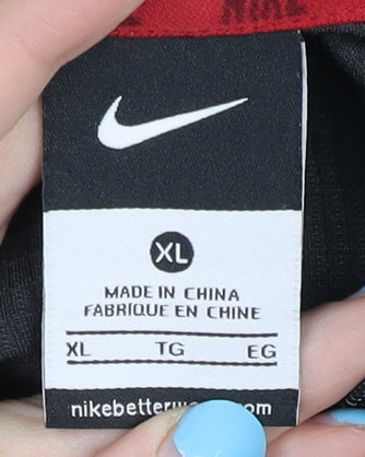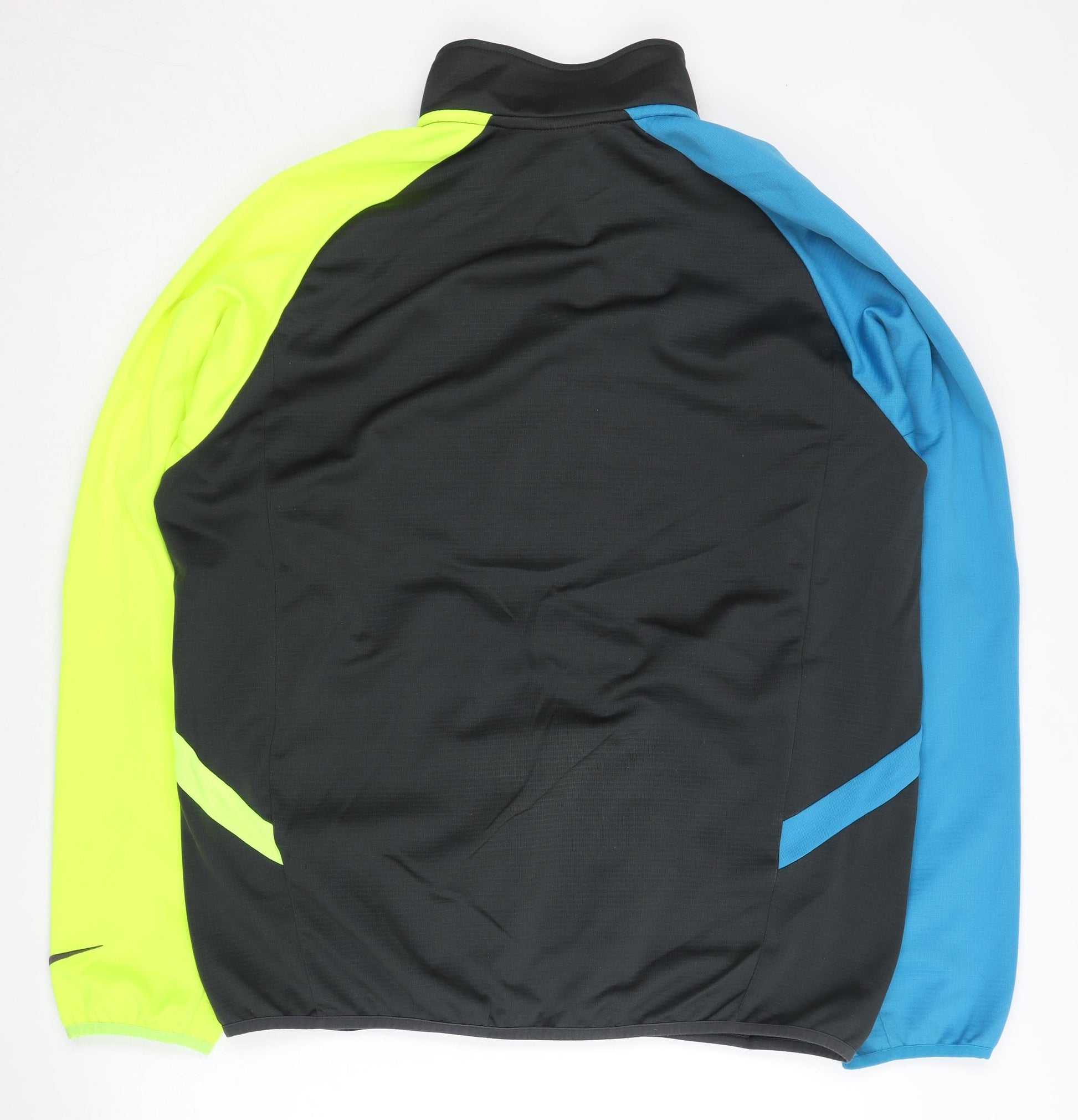 Upgrade your activewear collection with this bold and stylish Nike men's XL track jacket. Designed for versatile performance, this multicoloured piece features a vibrant combination of black, blue, and neon yellow panels in a modern colourblock pattern. Made from 100% polyester, it offers lightweight comfort and breathability, making it perfect for running, jogging, gym workouts, or general activewear use. The full zip front allows for easy wear and layering, while the stand-up collar provides added protection from the wind. Functional zippered side pockets offer secure storage for your essentials on the go. The regular fit ensures comfort without restricting movement, and the long sleeves make it suitable for spring, summer, and autumn wear. With its eye-catching design and high-quality construction, this Nike track jacket is a must-have for sports enthusiasts or anyone looking to add a pop of energetic style to their casual wardrobe. Machine washable for easy care, it’s a practical yet fashionable choice that works whether you’re pushing your limits in training or enjoying a casual day out. Light wear is visible but with no damage, ensuring a long life ahead.