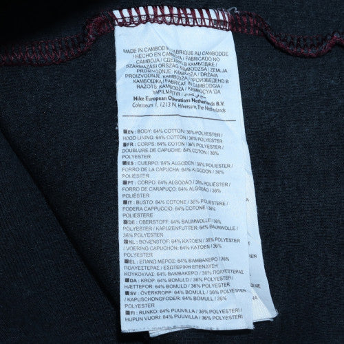 Stay comfortable and stylish with this Nike men's full zip hoodie, designed for everyday performance and casual wear. Crafted in a rich red colour with subtle tonal detailing, this hoodie adds an effortless touch of sporty sophistication to your wardrobe. The soft jersey fabric blend of 64% cotton and 36% polyester provides breathable comfort and lasting durability, ensuring it's ideal for all seasons. Featuring a practical full zip front, adjustable drawstring hood, and front pockets, it combines utility with classic Nike design. The high neckline offers added warmth, while ribbed cuffs and hem deliver a snug fit that helps keep the cold out. Suitable for activities such as gym workouts, running, jogging, or casual weekend wear, this regular fit hoodie ensures unrestricted movement and superior comfort. The iconic Nike logo accent adds an authentic athletic touch, reflecting quality and style. With a clean, minimalist pattern and a durable cotton blend material that’s machine washable, this piece is excellent for both active and leisure settings. In excellent pre-owned condition, showing minimal signs of previous use, it’s a reliable and stylish addition to your collection. Whether layered over a tee or worn alone, this hoodie bridges performance and fashion with ease. Ideal for the cooler months of autumn and winter, yet breathable enough for spring wear, this Nike hoodie effortlessly complements jeans, joggers, or athletic shorts. Perfect for the modern man seeking both comfort and iconic appeal, it delivers function, quality, and timeless sportswear style.