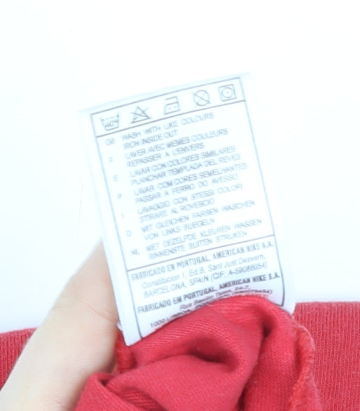 Step into effortless athletic style with this Nike Men's Red Cotton Logo T-Shirt, crafted with pure comfort and casual performance in mind. Made from 100% cotton and manufactured in Portugal, this T-shirt delivers a soft, breathable feel perfect for workouts, casual wear, or everyday layering. The classic crew neck and short-sleeve design ensure a relaxed fit that suits all shapes, while the bold Nike Swoosh logo printed on the chest adds an unmistakable sporty edge. Designed in a solid red tone, this T-shirt offers effortless coordination with joggers, shorts, or jeans—ideal for hitting the gym, running errands, or lounging in laid-back comfort. With its lightweight jersey fabric, it supports freedom of movement and breathability during active pursuits such as running, football, or gym training. The breathable and moisture-wicking cotton makes this Nike tee a timeless activewear essential. Despite showing gentle signs of previous wear, the overall condition remains very good, with fabric softness and colour vibrancy intact. The durable material ensures long-lasting quality, while the regular fit provides classic ease without compromising style. Perfect for seasonal versatility, this piece transitions seamlessly from spring to summer and into autumn. Machine washable for easy care, it’s as practical as it is iconic. Whether you’re training, travelling, or keeping casual, this Nike men’s red cotton T-shirt embodies classic sport-inspired authenticity and everyday comfort in one essential item. A must-have for fans of enduring athletic design looking for comfort and brand heritage that stand the test of time.