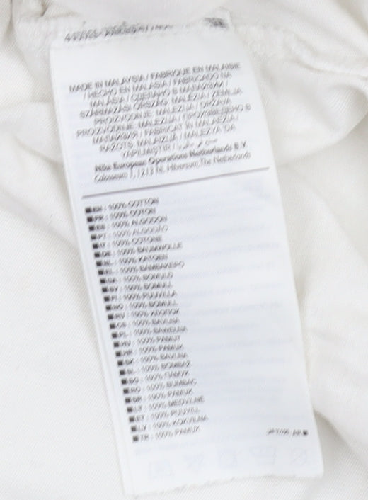 Step into style with this classic Nike Men's T-Shirt. Made from 100% cotton, it offers a comfortable and breathable fit, ideal for everyday wear. The crisp white colour adds a touch of sophistication, while the athletic cut ensures a flattering silhouette. Featuring a solid pattern with a distinctive Nike logo accenting the pocket, this T-shirt channels a minimalist aesthetic with a sporty edge. Perfectly versatile, it suits a range of occasions, making it a staple piece in any wardrobe. This size M T-shirt is designed with short sleeves and a crew neckline, offering a relaxed yet stylish look. Whether you're hitting the gym or enjoying a casual day out, this Nike tee provides the perfect blend of comfort and style. Although gently used, its condition remains good with only slight discolouration, providing excellent value for a trusted brand. Pair with jeans or shorts for an effortlessly cool ensemble. Ideal for all seasons, it ensures you stay stylishly cool no matter the weather.