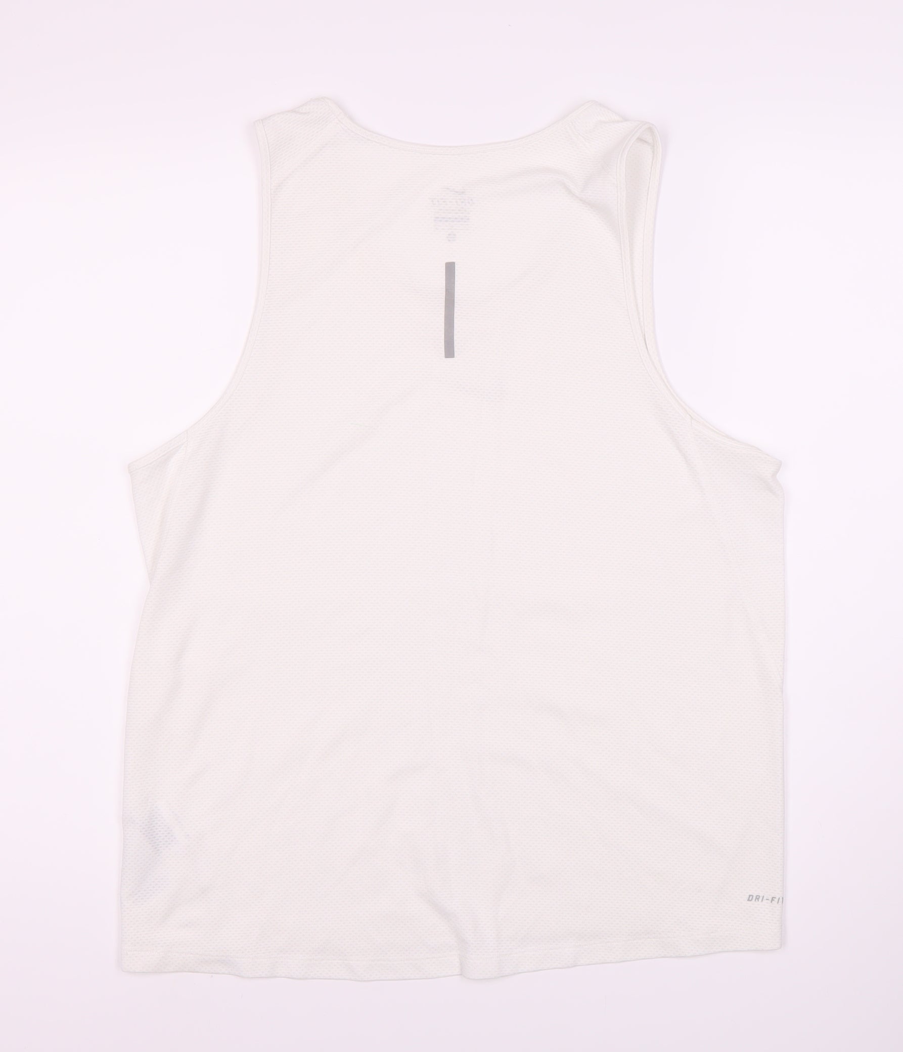 Elevate your athletic ensemble with this Nike Men's White Dri-Fit Tank Top, designed for optimal performance in running and jogging activities. This sleeveless piece offers a breathable and quick-dry fabric, enhancing comfort and endurance during high-intensity workouts. The jersey-style top is made from lightweight materials comprised of 77% polyester and 23% nylon, promoting moisture-wicking capabilities that are perfect for spring and summer climates. Its athletic fit ensures a sleek look and unrestricted movement, while the solid white colour and iconic logo accents provide a stylish touch. Machine washable for easy care, this tank top is a practical addition to any athlete's wardrobe. Ideal for those warmer days or layering, experience innovation and style with Nike's quality sportswear.