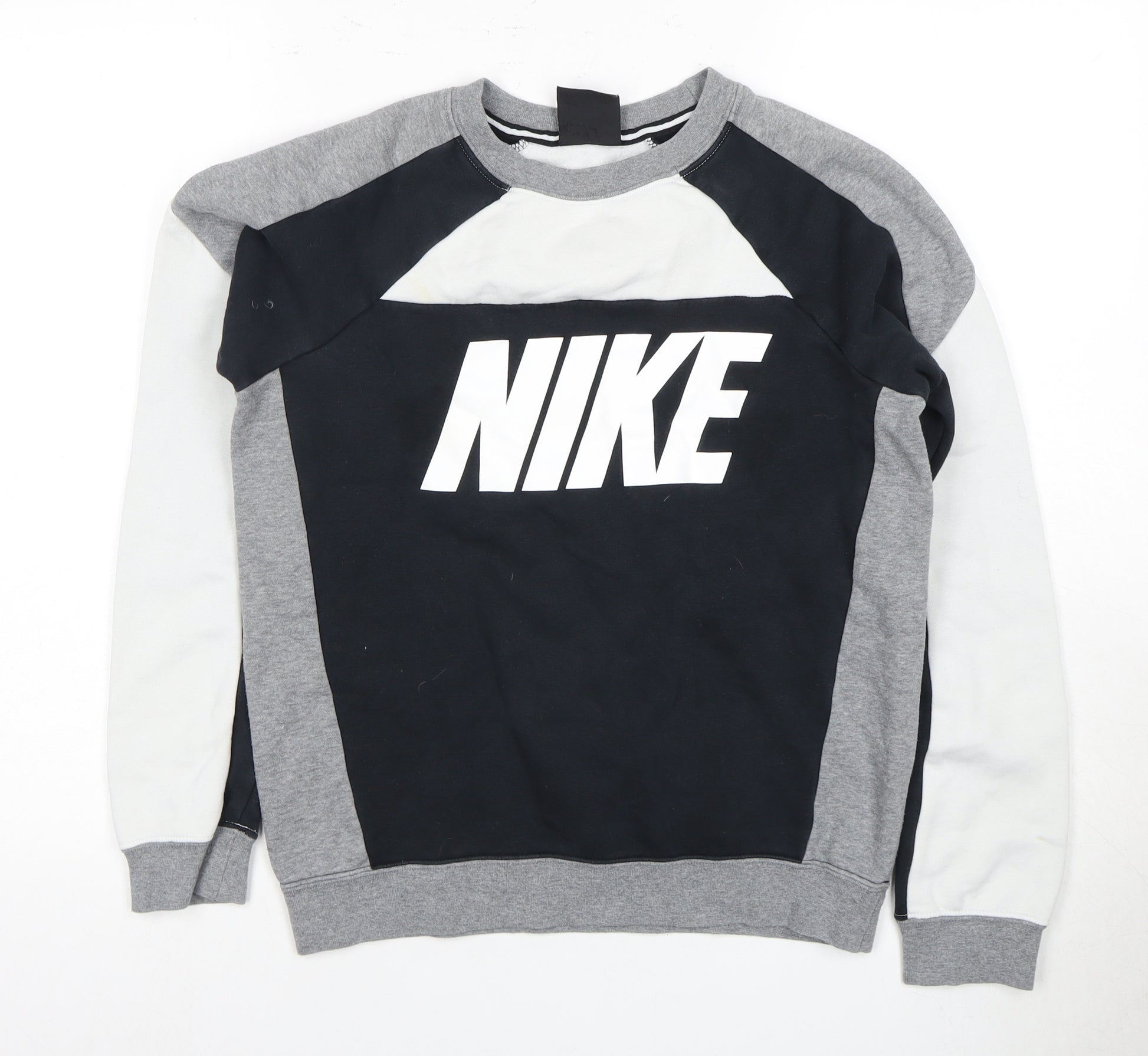 Elevate your casual wardrobe with this Nike Men's Pullover Sweatshirt, available in size XS. Designed in a versatile black colour with a striking logo accent, this pullover is perfect for a relaxed yet stylish look. Crafted from a comfortable jersey fabric blend of 82% cotton and 18% polyester, it promises a soft feel and long-lasting wear. The sweatshirt features a classic crew neck and long sleeves, making it an ideal choice for all seasons. The bold graphic print theme adds a sporty touch, perfect for gym and training activities. Machine washable for easy care, this sweatshirt ensures you maintain a fresh look effortlessly. Despite being in excellent condition with minimal signs of wear, this piece offers unbeatable value, priced to move. Secure this great find and enjoy a staple piece that complements any casual ensemble. Whether you're heading out for a run or lounging at home, this Nike sweatshirt delivers both comfort and style.