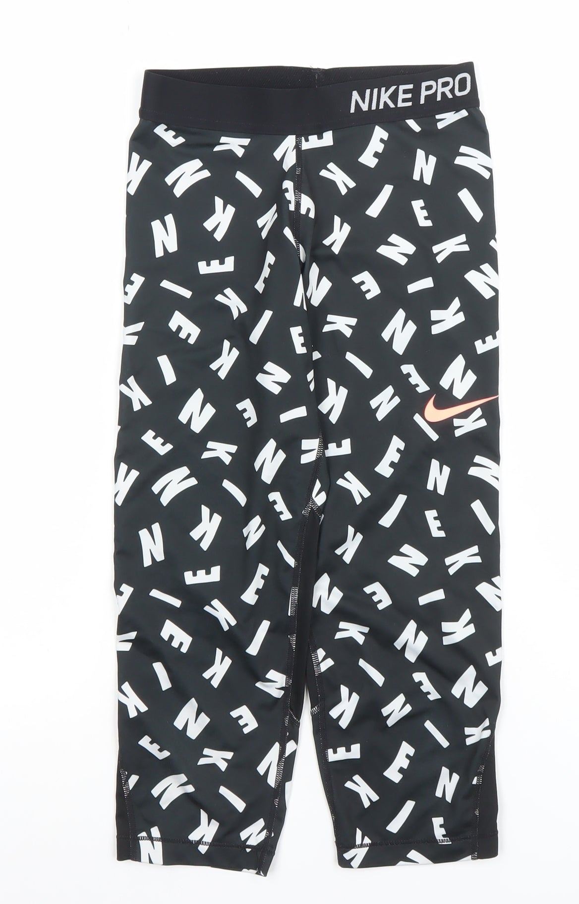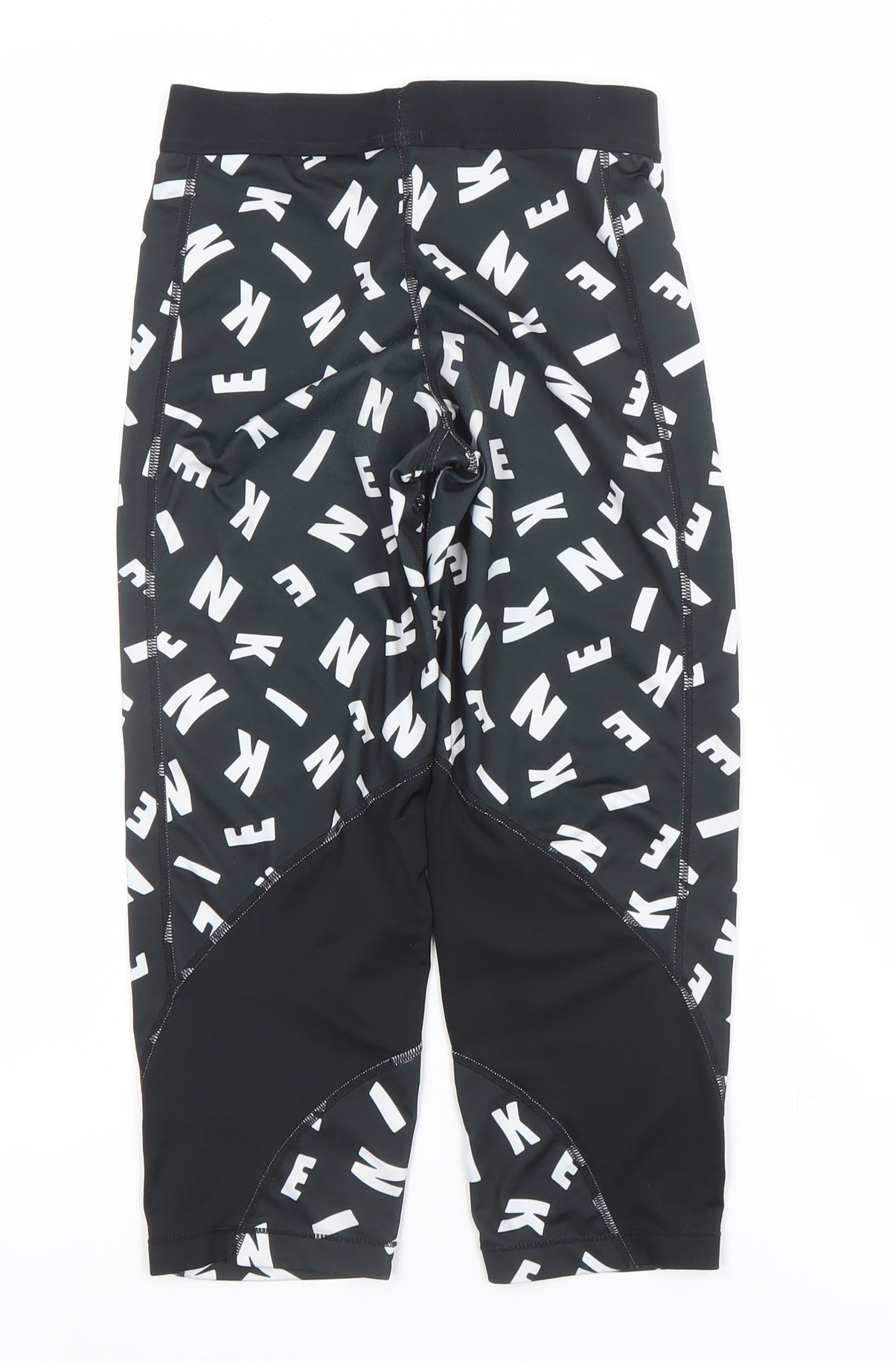 Step into comfort and performance with these Nike Pro Dri-FIT women’s capri leggings, designed to enhance your every workout. Made from a smooth and lightweight blend of polyester and elastane, they offer excellent moisture-wicking properties to keep you dry, cool, and comfortable during even the most intense sessions. The black base is adorned with a bold white letter print pattern that spells out 'NIKE' in a scattered, modern design, giving you a standout gym look that blends style with strength. Featuring Nike’s Dri-FIT technology, these leggings provide exceptional breathability and quick-dry performance, while the soft, elastic waistband ensures a secure yet flexible fit that moves naturally with your body. The capri length design gives these leggings a flattering and practical fit, perfect for indoor workouts, yoga sessions, and outdoor runs. The stretchy, second-skin feel supports your movements while providing compression in key areas, helping reduce muscle fatigue and maintain performance over time. Ideal for activities such as gym training, running, CrossFit, or yoga, these leggings easily transition from workout sessions to casual wear. The material composition of 92% polyester and 8% elastane ensures durability, flexibility, and easy maintenance, as they are machine washable and quick drying. With their athletic fit and contemporary print, these Nike Dri-FIT capri leggings are built for women who value function, fashion, and performance. Pair them with your favourite sports bra or training top for a confident and effortless active look. In excellent pre-owned condition with no visible flaws, they are ready to become a staple in your activewear collection. Get a sleek, supportive, and stylish boost to your fitness wardrobe with these versatile Nike Pro leggings, perfect for all-season training and beyond.
