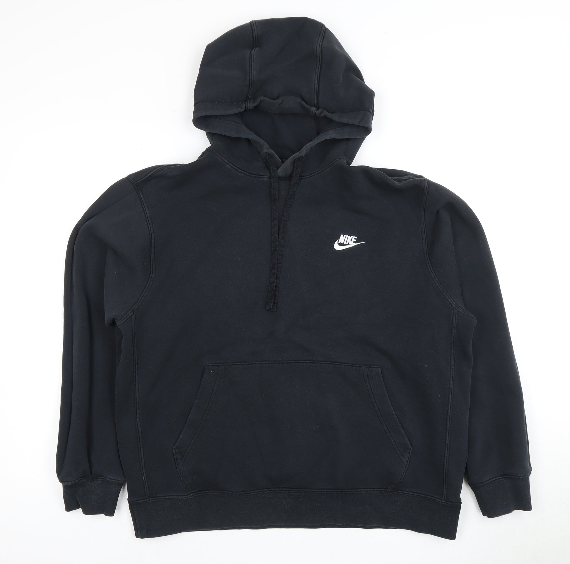 Stay comfortable and stylish with this Nike black pullover hoodie, perfect for unisex adults. Crafted from a cotton-polyester blend, it offers a soft, cosy fleece feel ideal for all seasons. Whether you're lounging at home or heading out, this hoodie provides a relaxed fit with its functional design that includes a roomy hood and a front kangaroo pocket. The iconic Nike logo accentuates its sleek look, ensuring you make a statement wherever you go. A staple for casual occasions, this hoodie complements any ensemble, offering both style and comfort.