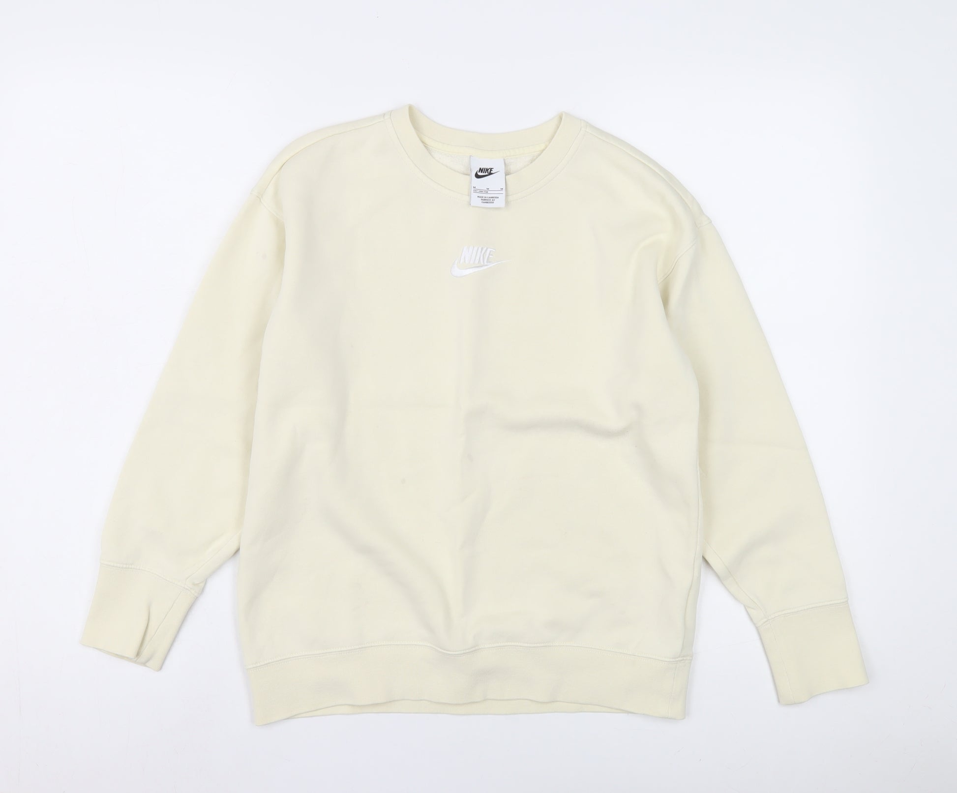 Discover ultimate comfort and style with this Nike pullover sweatshirt, crafted for unisex adults in a versatile ivory shade. Ideal for autumn, spring, and winter, this long sleeve piece features a classic crew neck design, perfect for casual outings or a sporty weekend look. Accentuated with the iconic Nike logo, it offers effortless appeal. Made from a blend of high-quality cotton and polyester fleece, it promises both warmth and breathability. Whether you're running, jogging, or enjoying a casual day out, its regular fit ensures unrestricted movement. With machine washable fabric, it's easy to care for, making it an essential addition to your activewear and casual wardrobe collection. Don't miss out on the opportunity to own this stylish and comfortable piece, ideal for various occasions from gym workouts to laid-back gatherings. Embrace the blend of fashion and functionality this season.