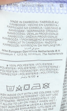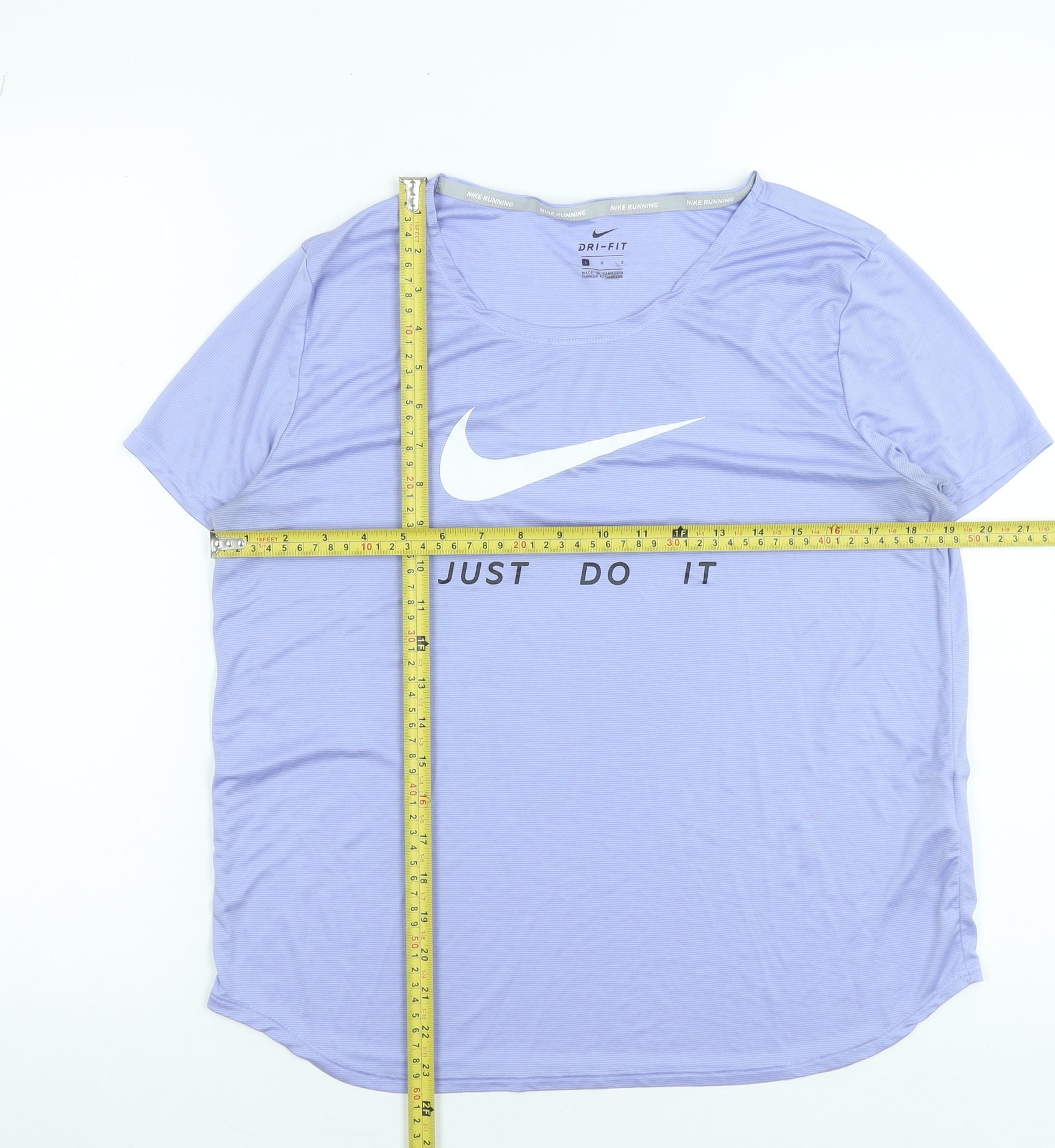 Upgrade your workout wardrobe with this Nike Women’s Dri-Fit Running T-Shirt in a stylish purple shade. Designed with performance in mind, this lightweight activewear top keeps you comfortable and dry throughout your toughest training sessions. Made from 100% polyester, the advanced Dri-Fit fabric wicks away moisture, ensuring you stay cool and focused whether you're running, training at the gym, or pushing through your next fitness challenge. The regular fit offers a flattering and comfortable silhouette, while the crew neck and short sleeves provide a classic, easy-to-wear style ideal for layering or wearing on its own. Its breathable mesh-textured fabric enhances ventilation, making it perfect for warmer spring and summer workouts, yet comfortable enough to wear during transitional seasons like autumn. Finished with Nike’s iconic swoosh logo and the motivational 'Just Do It' slogan on the front, this T-shirt embodies sporty confidence with a timeless appeal. The pullover design makes it simple to slip on before or after your workout, and the soft material ensures full freedom of movement. Whether you’re jogging outdoors or hitting the treadmill, this top delivers reliable comfort and lasting quality. In excellent pre-loved condition, the T-shirt shows minimal signs of wear and retains its vibrant colour and fabric integrity. It’s an ideal choice for women seeking both performance and style in their activewear collection. Machine washable for easy care, it’s practical for regular use without losing shape or function. Perfect for running, gym training, or casual sporty days, this Nike Dri-Fit T-Shirt is a smart and versatile addition to your athletic gear. Pair it with leggings, shorts, or joggers to complete your performance-inspired look. Experience Nike’s trusted quality and design – motivating you to move with confidence and style.