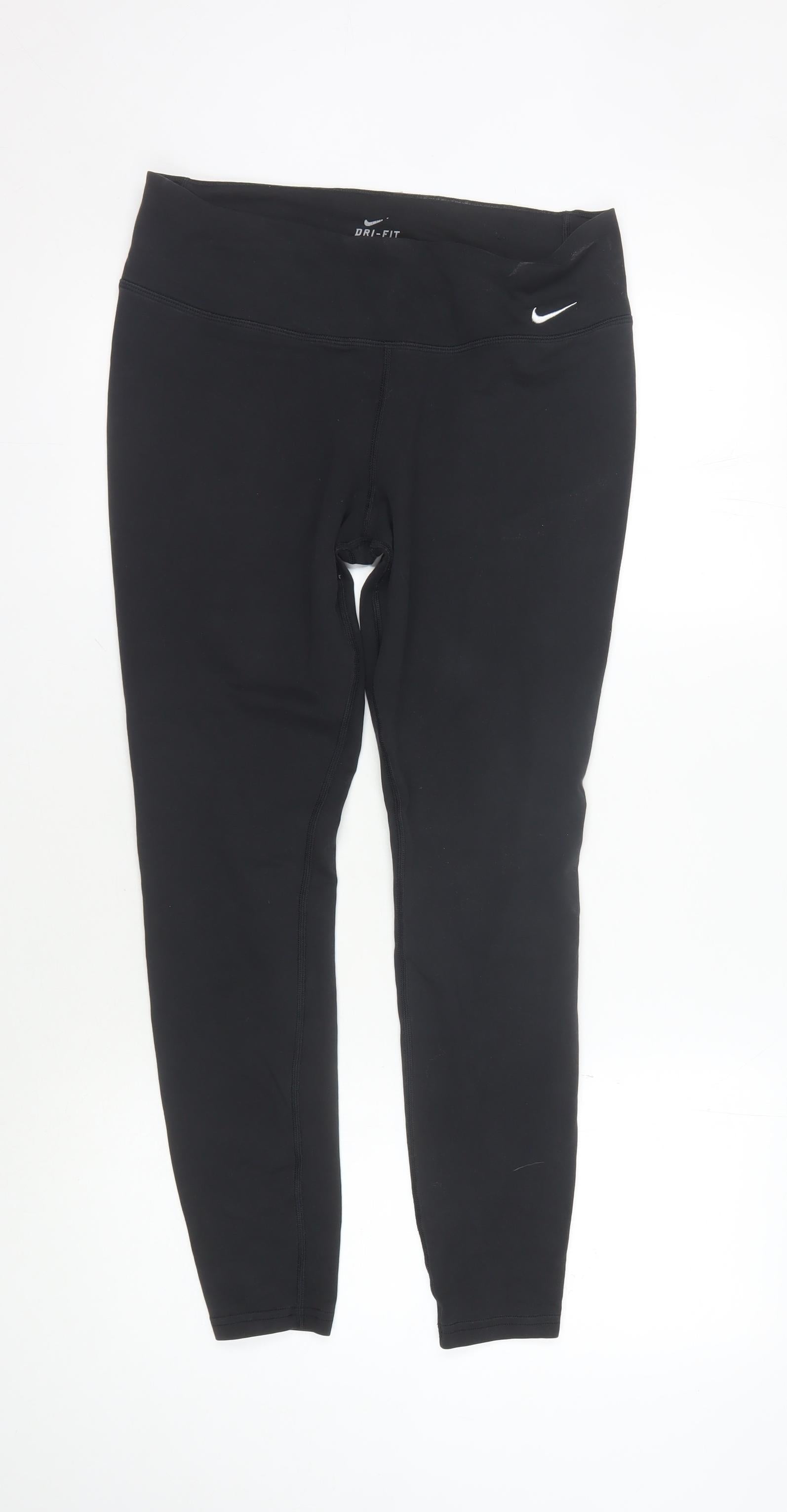 Step up your workout game with these stylish Nike Dri-FIT leggings, perfect for women who value both fashion and function. Designed in a chic black shade, these leggings offer a sleek and versatile look that can seamlessly transition from gym sessions to casual outings. Crafted from a comfortable and durable blend of polyester and elastane, they provide excellent stretch and comfort. The moisture-wicking technology keeps you dry and cool, ensuring you stay focused during intense workouts. Ideal for activities ranging from yoga and running to general gym training, these leggings are equipped with a breathable fabric that enhances air circulation.The skinny leg style complements the slim fit, providing a flattering silhouette, while the jersey fabric ensures a smooth feel against the skin. With no pattern, these leggings are perfect for those who prefer a minimalist aesthetic. Designed for all-season wear, they can be layered easily when needed. Whether you're heading out for a spring jog or practising yoga in winter, these leggings are a reliable choice.Convenience meets care with these machine washable leggings, making them easy to maintain. Although they are in excellent condition without any visible signs of wear, they lack original sales tags. This, however, does not detract from their quality or performance, making them an excellent addition to your activewear collection.Perfect for the active woman, these leggings are a fine balance of comfort, style, and functionality. Grab these Nike Dri-FIT leggings and elevate your wardrobe today!