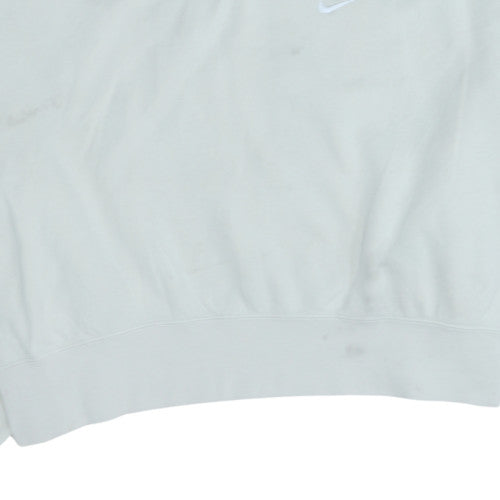 Nike Women White Crew Neck Pullover Sweatshirt L Logo Print Cotton Blend