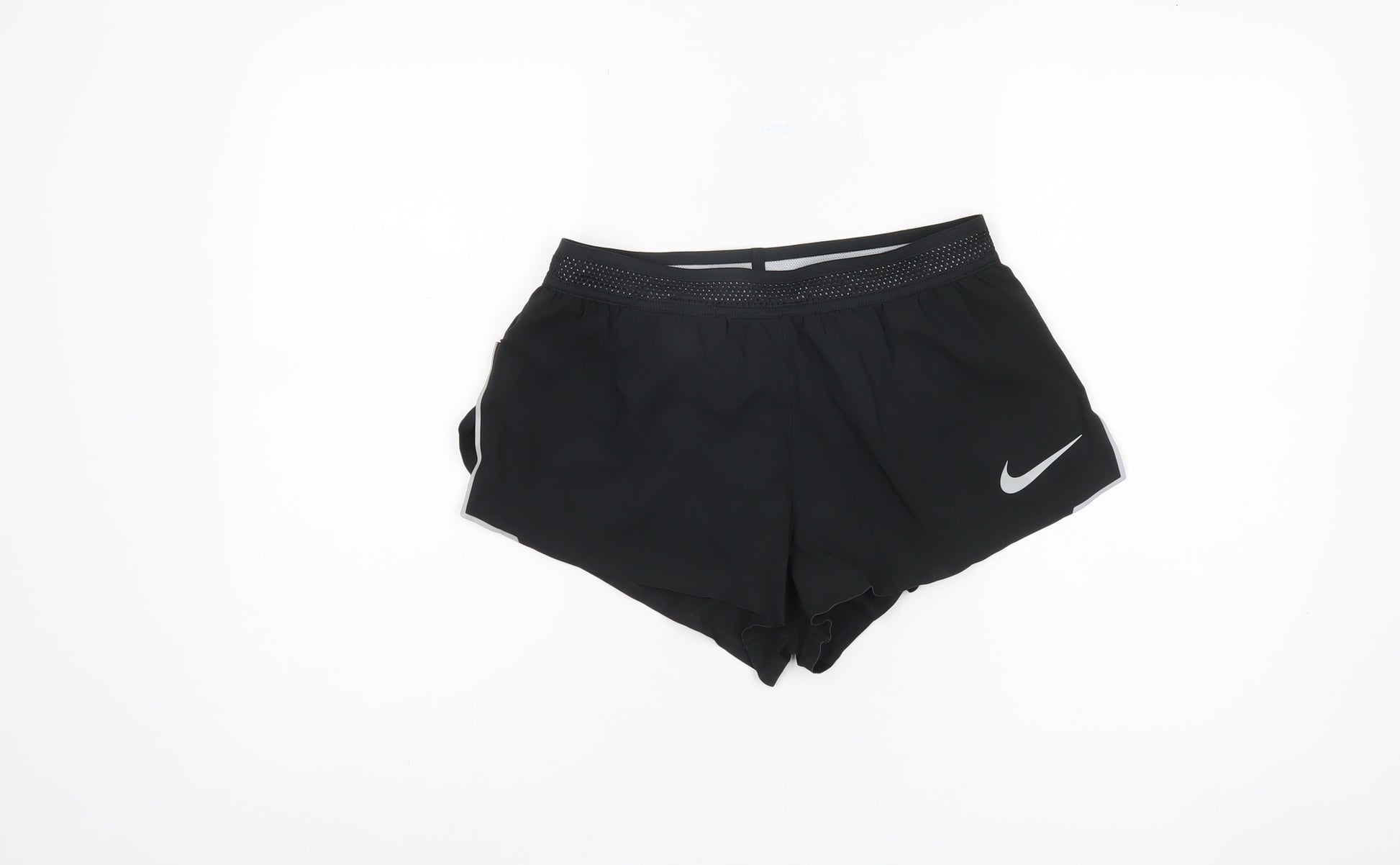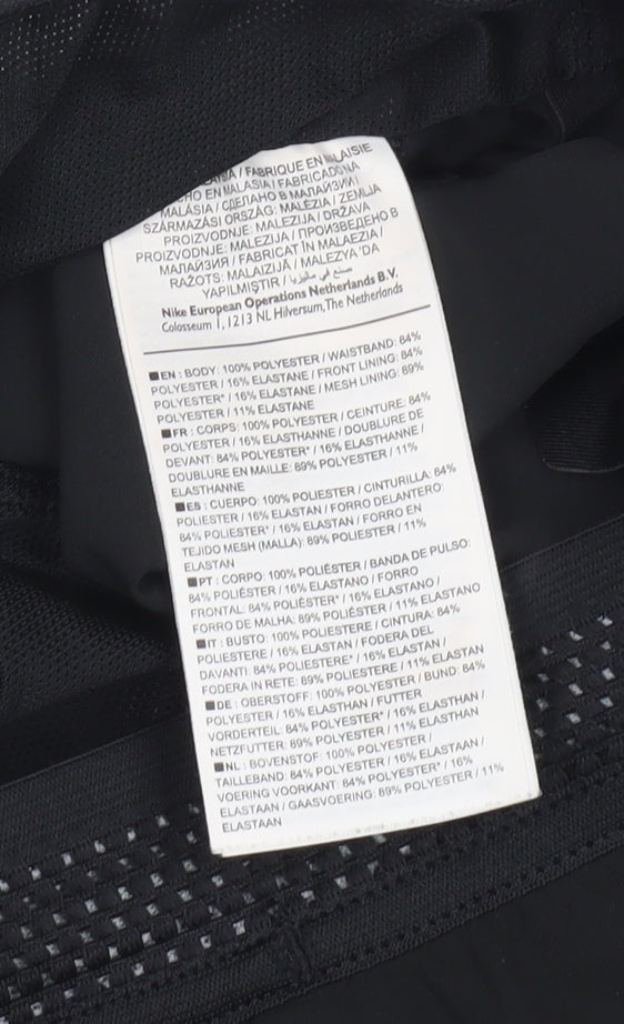 Elevate your workout style with these Nike athletic shorts, designed exclusively for women. Perfect for running, jogging, or your gym training sessions, the shorts boast a sleek black colour that pairs effortlessly with any activewear outfit. Crafted from lightweight polyester, the shorts promise breathability and comfort, ensuring you stay cool even during intense workouts.The elastic waistband provides a snug fit, while reflective features ensure visibility if you're on an evening run. With a machine-washable design and durable construction, these shorts offer practicality without compromising on style. Ideal for summer activities, they offer the support and flexibility needed to maximize your performance. Whether you're hitting the gym or going for a jog, these Nike shorts are the activewear essential your workout wardrobe needs.