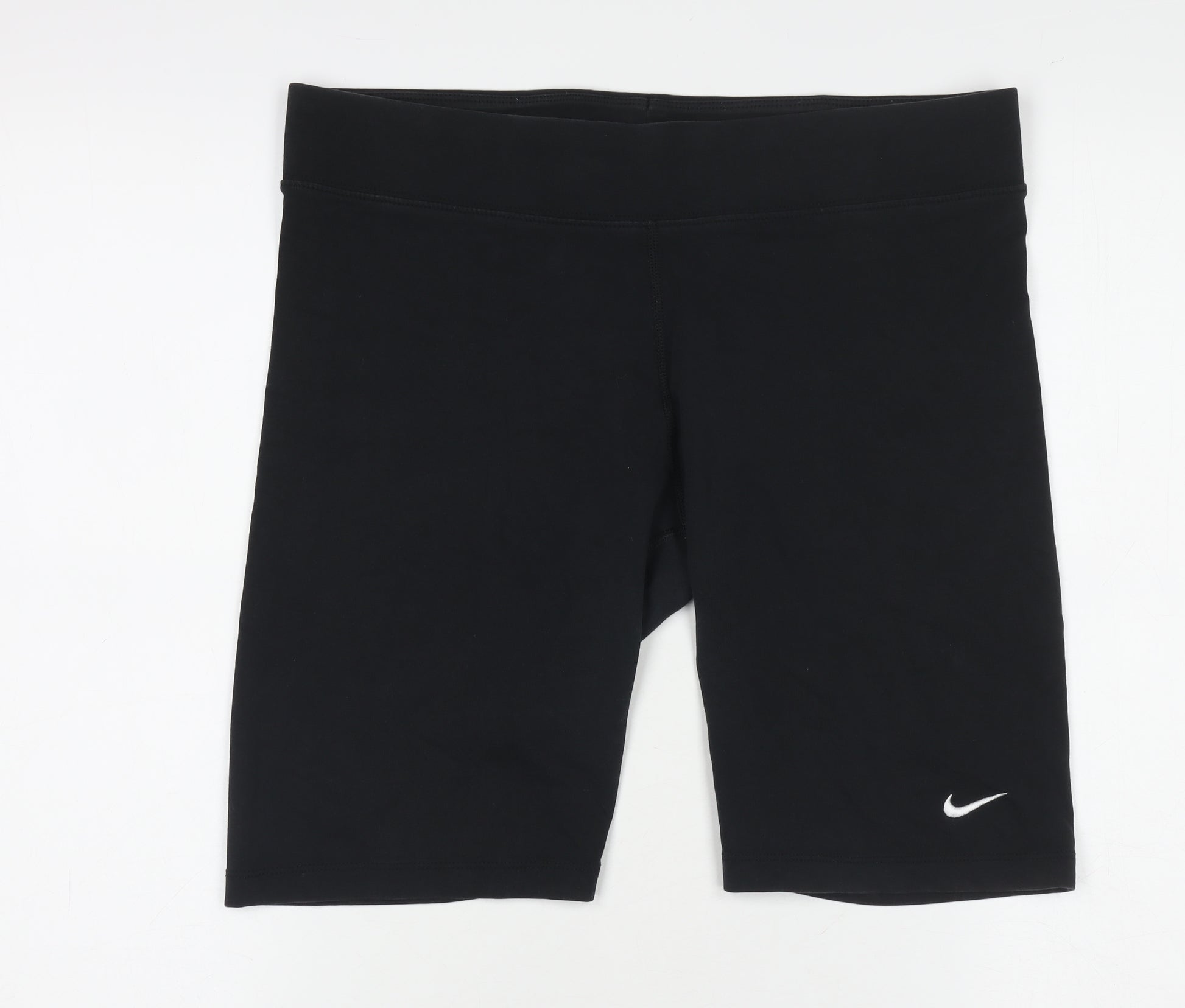 Stay comfortable and confident through every workout with these Nike Women's Black Biker Activewear Shorts in size L. Designed for optimal performance and sleek style, these shorts make a versatile addition to your fitness wardrobe. Crafted from a soft, stretchy jersey blend of 80% polyester and 20% elastane, they offer flexibility that moves with your body, providing a supportive fit ideal for high-intensity workouts or casual everyday wear. These Nike biker shorts feature a streamlined athletic design with a flattering mid-length finish, making them perfect for gym sessions, running, yoga, and other active pursuits. The fabric is moisture-wicking and breathable to help you stay cool and dry, even during the most intense training. The elasticated waistband ensures a secure, comfortable fit while accentuating your natural shape. Light in weight and designed for freedom of movement, they combine both functionality and sporty style. Presented in a classic black colour, these shorts are a staple piece that pairs effortlessly with any workout top or hoodie. Unmarked and in excellent pre-owned condition with minimal signs of previous wear, they showcase Nike’s renowned quality and performance-ready construction. Practical, stylish, and made to perform, these shorts are a reliable go-to option for both training and leisure.Perfect for the gym, running, cycling, or casual athleisure outfits, these Nike biker shorts blend comfort, durability, and timeless design — ideal for the modern active woman. Whether you’re powering through a workout or relaxing on the weekend, they deliver both style and support throughout your day.