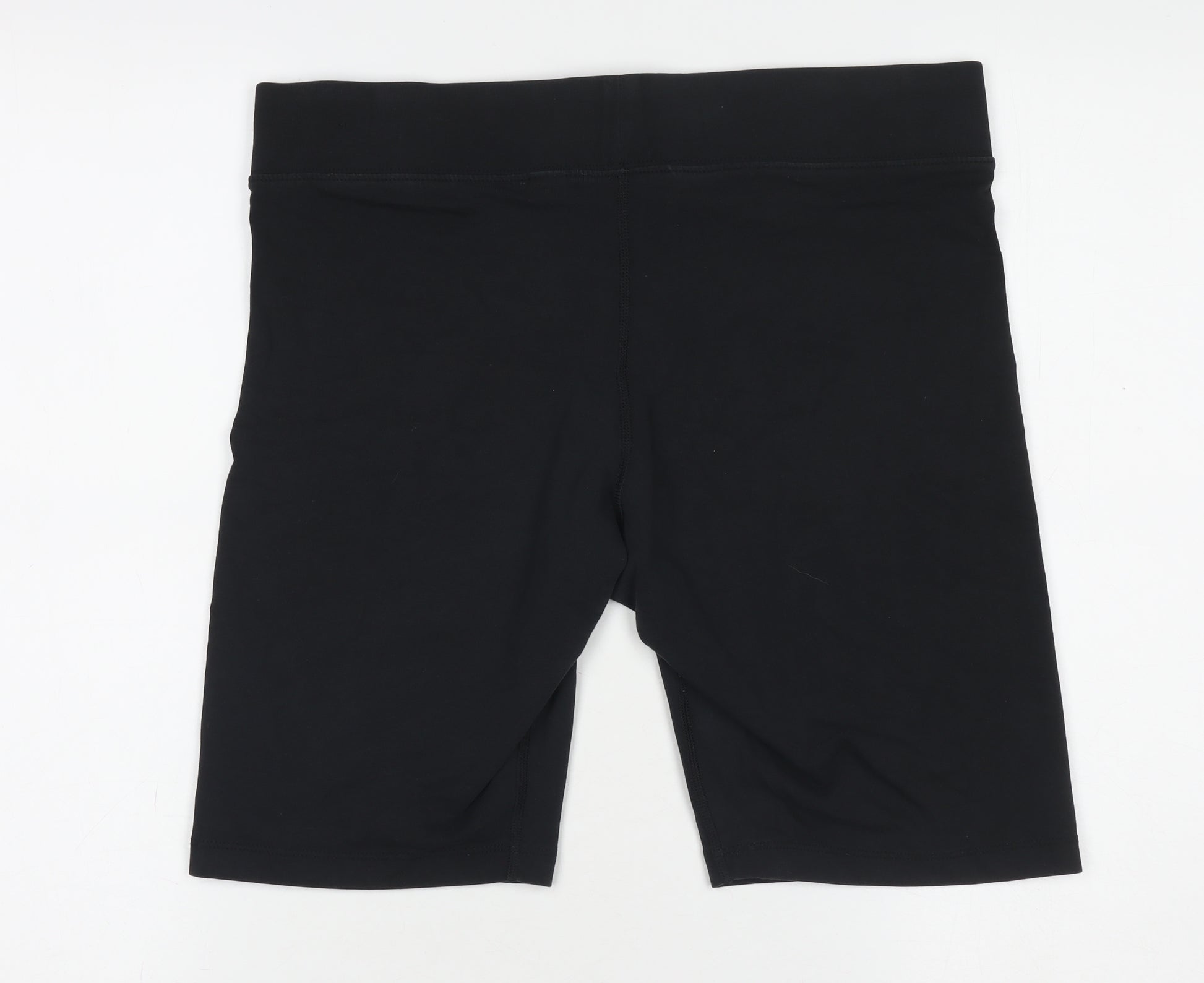 Women's Black Biker Activewear Shorts Size L Stretch Gym Shorts