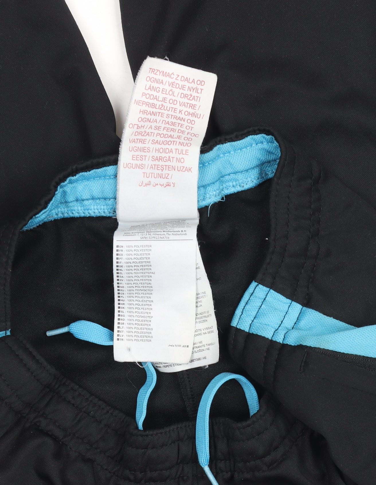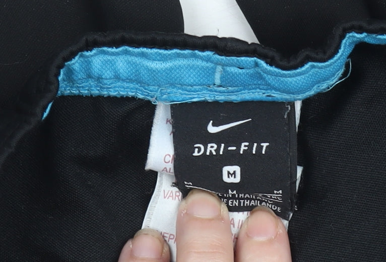 Step into style and performance with these Nike Dri-Fit women’s track pants, designed for ultimate comfort and functionality. Rendered in classic black with subtle blue detailing, these medium-sized trousers offer an athletic fit that flatters while allowing freedom of movement. Made entirely from 100% polyester microfibre, they feature Nike’s advanced Dri-Fit technology, which helps wick away sweat to keep you cool, dry, and comfortable during every workout or daily activity.The design combines practicality with sporty aesthetics, making these track pants ideal for running, football, gym and training sessions, or casual wear. The elastic waist with an integrated drawstring allows a custom, secure fit, while the lightweight and breathable fabric ensures comfort in all seasons. With their tapered leg design, they create a modern silhouette that transitions effortlessly from the gym to everyday wear.These black pants are a versatile addition to any active wardrobe, offering excellent performance and a clean, streamlined look that suits both indoor and outdoor fitness routines. Whether you're warming up, cooling down, or tackling an intense run, these trousers move with you. The quick-drying, moisture-wicking properties of the Dri-Fit fabric prevent discomfort caused by sweat, while the overall build quality reflects Nike’s renowned commitment to athletic innovation.In excellent used condition, these trousers show minimal wear and have been well maintained, ensuring continued reliability and style. Suitable for all seasons, they are easy to care for and can be machine washed for hassle-free upkeep. Perfect for sporty women who value both function and fashion, these Nike Dri-Fit trousers bring together superior material technology and timeless design to help you perform your best with confidence.Experience unmatched comfort, mobility, and durability with these well-made Nike Dri-Fit track pants – an ideal choice for active days, workouts, or relaxed weekends alike.