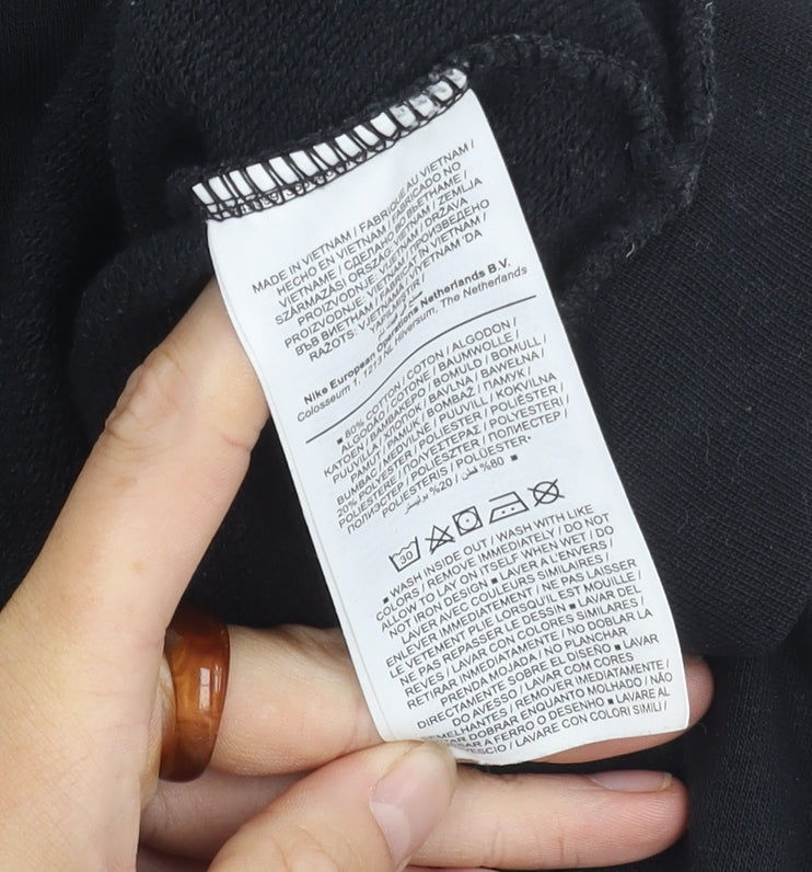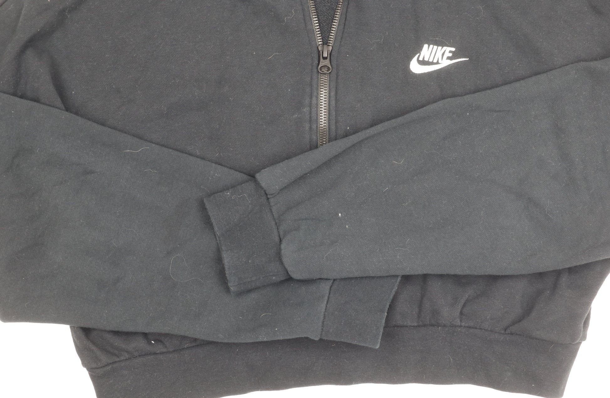 Elevate your casual style with this Nike Women's Hoodie, available in sleek black. Designed for comfort and functionality, this hoodie is made of a high-quality cotton and polyester blend, ensuring softness and durability. The full zip closure provides convenience, making it easy to layer this hoodie over your favourite tops. Adorned with the iconic Nike logo, this hoodie adds a subtle touch of brand recognition and a sporty vibe to your look. With a regular fit and a high neckline, it's perfect for keeping warm during colder months while still breathable for all-season wear. Ideal for gym and training activities, its lightweight nature makes it easy to pack for on-the-go lifestyles. Whether you're staying active or lounging at home, this black hoodie is an excellent wardrobe staple. Despite slight wear visible, the overall condition is excellent, promising both style and comfort in one chic design. Easily machine washable, you can maintain its condition with minimal effort.