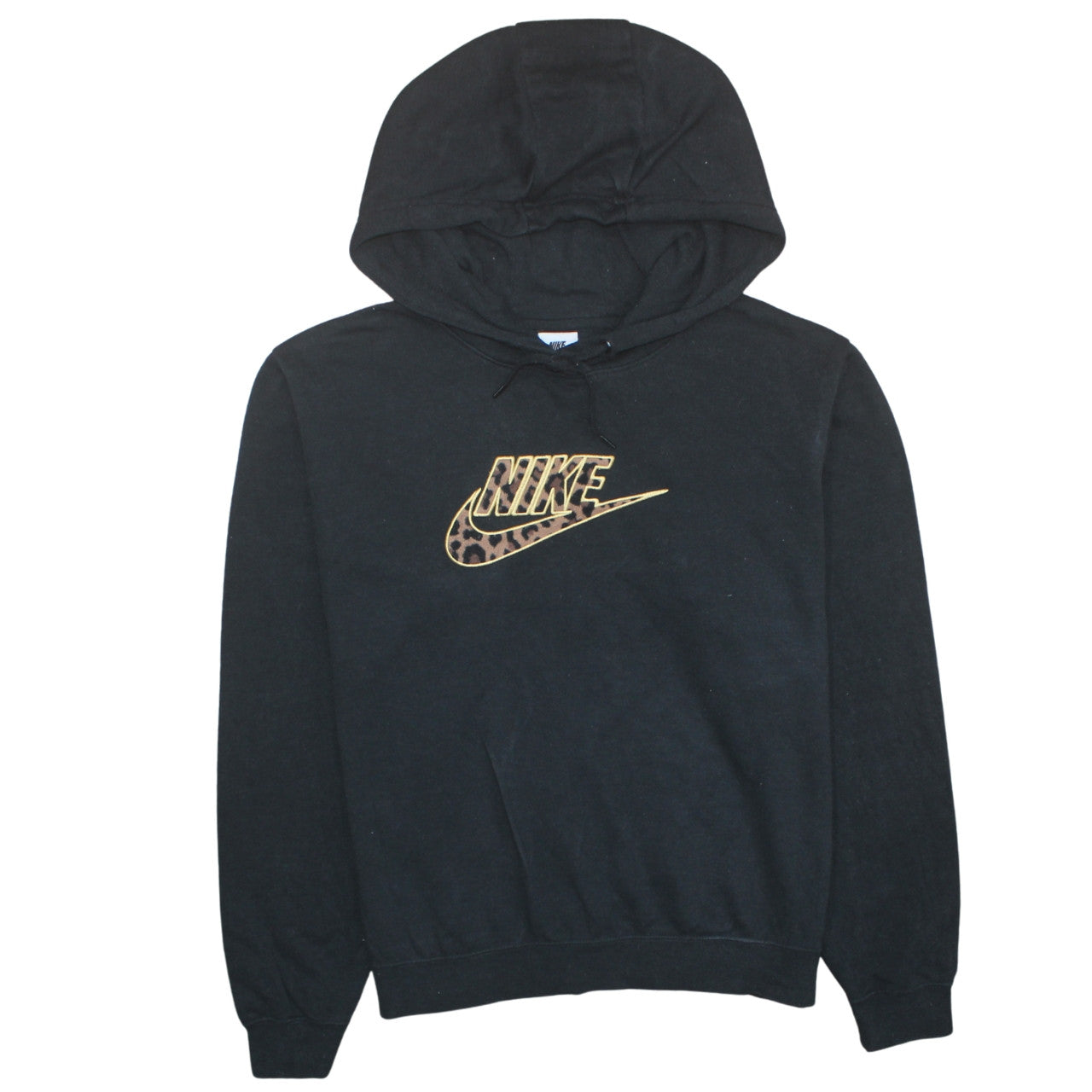 Add a touch of bold style to your casual wardrobe with this Nike women’s black pullover hoodie. Designed with a classic fit and comfortable feel, this hoodie is crafted from soft, durable fabric that ensures a snug yet breathable wear. The standout feature is its striking gold and leopard-print Nike logo across the chest, which adds a touch of glamour and edge to an everyday essential. Perfect for layering in cooler weather or wearing as a statement piece for relaxed outings, gym sessions, or lounging at home. The adjustable drawstring hood allows for a personalised fit, while the ribbed cuffs and hem help maintain shape and provide added warmth. Finished in timeless black, this hoodie pairs effortlessly with joggers, leggings or jeans, making it a versatile addition to any wardrobe. Suitable for women who appreciate sporty chic with an urban twist, it’s practical for all seasons thanks to its lightweight fleece feel. A must-have for fans of comfortable yet stylish streetwear, this hoodie blends Nike’s signature quality with contemporary fashion appeal. Perfect choice for gym-goers or casualwear lovers who want a touch of personality in their everyday look. With its distinctive printed logo and cozy material, this hoodie makes a great go-to layer for cooler evenings or off-duty days.
