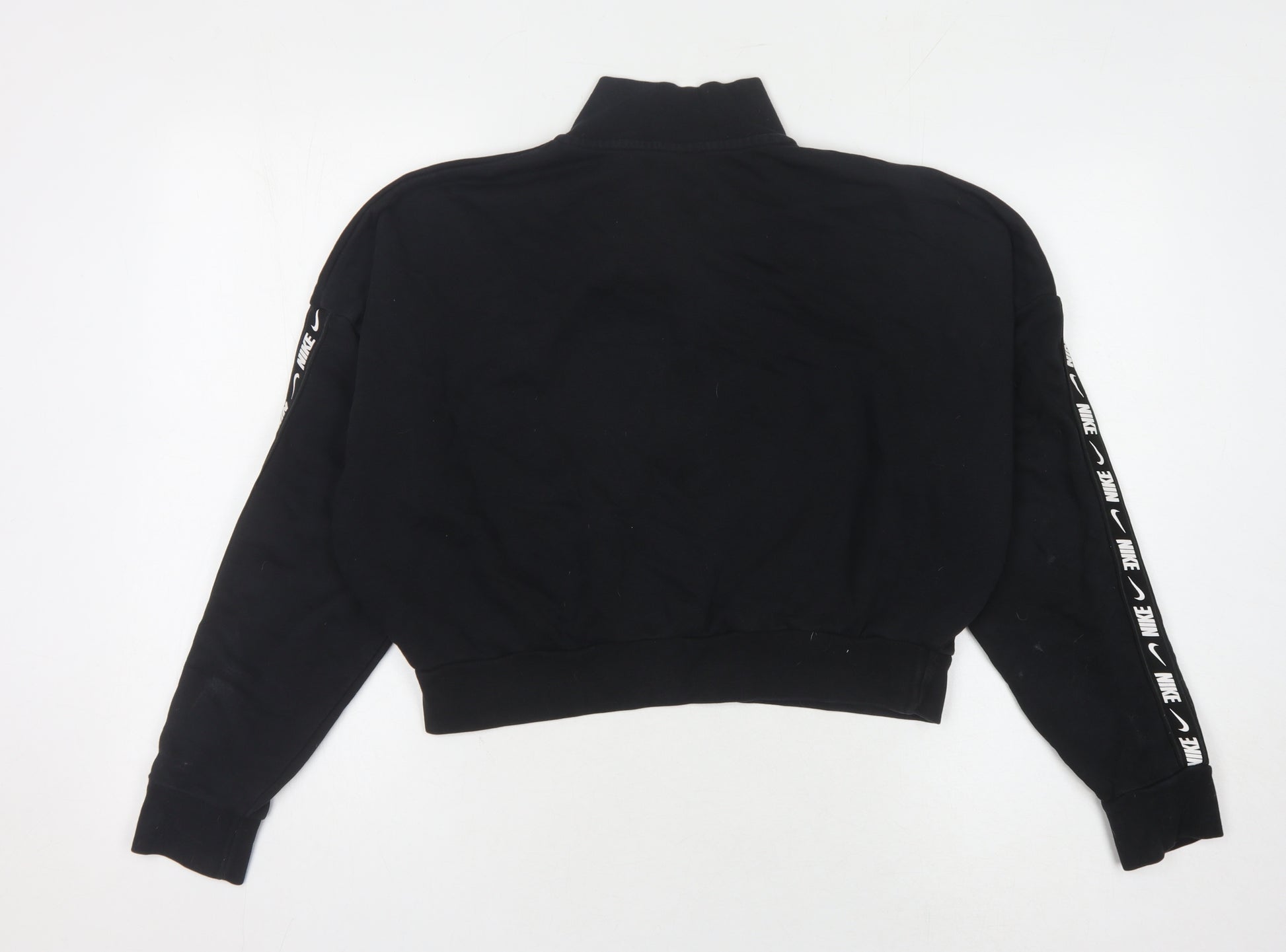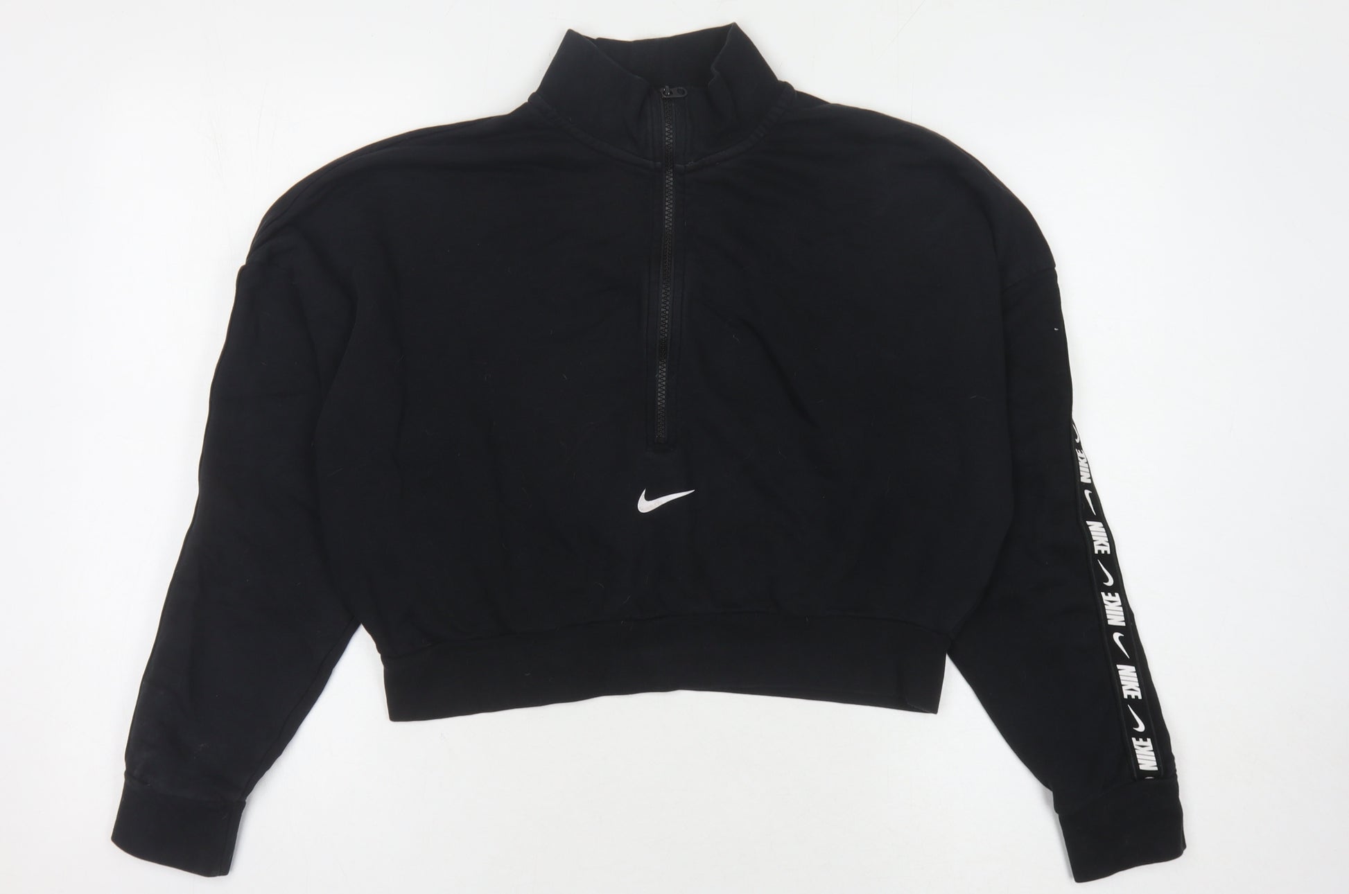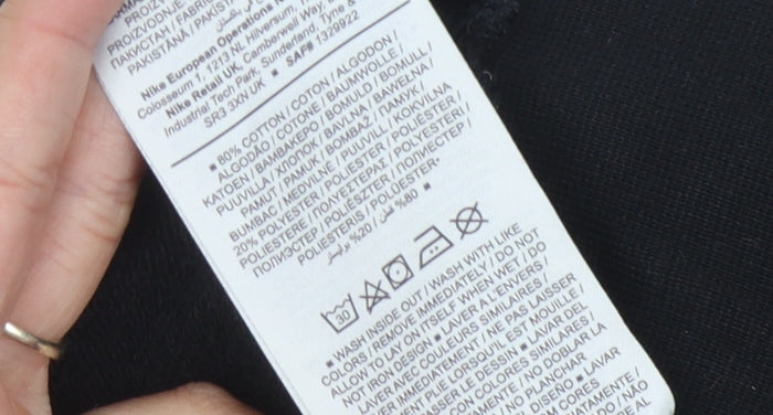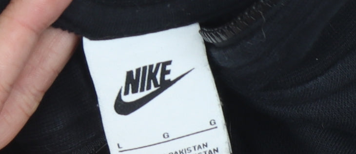 Elevate your activewear wardrobe with this stylish Nike Women's Black Pullover Hoodie in size L. Designed for comfort and performance, this hoodie is perfect for those who love to stay active. The hoodie features a modern high neck design with a convenient 1/2 zip closure, allowing for easy adjustment and layering. The logo accents provide a classic Nike touch, adding a sporty flair to your outfit.Crafted from a soft jersey fabric blend, this hoodie offers both style and function. The material breakdown of 80% cotton and 20% polyester ensures that you stay comfortable and warm, while the lightweight design makes it an excellent choice for all seasons. Whether you're hitting the gym, going for a jog, or just running errands, this hoodie is versatile enough to fit any occasion.The relaxed fit and long sleeves make it an ideal layering piece, and the machine washable fabric allows for easy care and maintenance. Although this hoodie is in excellent condition, it shows slight wear, adding authentic character to your active style.Don't miss out on the chance to own a genuine Nike piece that combines functionality with iconic brand design. Perfect for running, gym, or casual wear, this hoodie is a guaranteed investment in both fashion and athleticism.