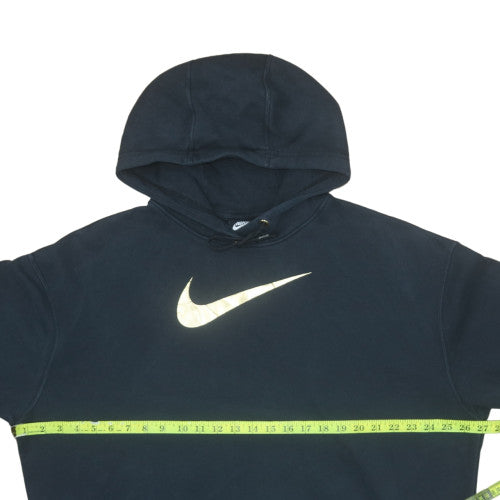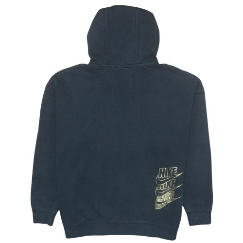Step out in iconic sportswear style with this Nike black pullover hoodie, designed for ultimate comfort and effortless everyday wear. Featuring the signature gold Nike Swoosh logo on the chest, this hoodie delivers a sleek, sporty look that's ideal for casual days or light workouts. Made from a soft blend of cotton and polyester, it offers durability, breathability, and a relaxed fit that ensures lasting comfort. The drawstring hood provides personalised coverage, while ribbed hem and cuffs enhance fit retention and maintain warmth in cooler weather. Its simple yet bold design makes it a wardrobe essential for active or laid-back moments. Whether paired with leggings, jeans, or joggers, this Nike hoodie transitions seamlessly from gym sessions to casual streetwear, keeping you stylish at all times. Perfect for those who appreciate understated detailing and premium quality from one of the world’s most trusted athletic brands. With its classic pullover style, medium size fit, and soft fleece interior, this hoodie promises warmth without bulk, making it suitable for year-round wear. Nike’s innovative craftsmanship ensures durability and a flattering silhouette, ideal for women who value both comfort and contemporary design. A versatile staple that speaks of both performance and fashion, this gold-accented hoodie stands out effortlessly in every season. In excellent used condition, this piece has been well cared for and retains its rich colour and original fabric texture.