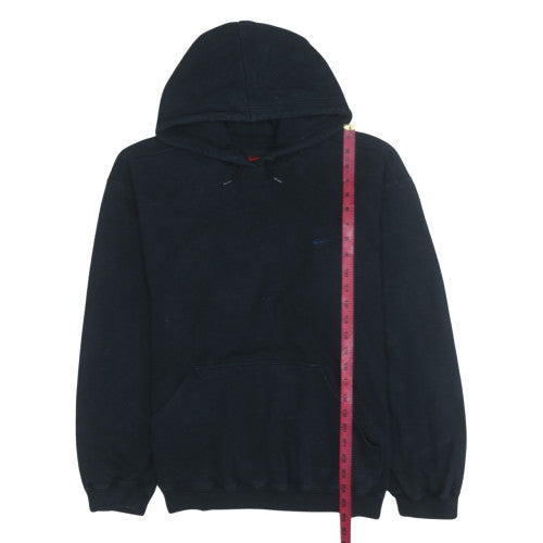 Stay comfortable and stylish in this classic black Nike pullover hoodie designed for women. Featuring the brand's signature athletic quality, this hoodie is made from a soft and durable cotton blend that feels great against the skin while offering excellent warmth for everyday wear. The pullover design includes a practical hood with an adjustable drawstring for a snug, secure fit, and a spacious kangaroo pocket to keep your hands warm or store small essentials on the go. The relaxed fit ensures all-day comfort and makes it easy to layer over t-shirts or under jackets. With ribbed cuffs and a hemline that maintain their shape, this hoodie provides a neat, structured look that pairs well with jeans, leggings, or joggers. Subtle Nike branding on the chest adds a premium finishing touch without being overpowering, making it versatile enough for both athletic and casual settings. Perfect for cool-weather outings, gym sessions, or lounging at home, this piece represents effortless sporty style. Its breathable cotton mix allows flexibility while retaining warmth, and the timeless pullover silhouette means it will remain a go-to in your wardrobe season after season. The condition is excellent, showing minimal signs of wear, ensuring long-lasting use at a fraction of the cost of new. Whether you're hitting the gym or relaxing on a casual weekend, this hoodie offers the ideal combination of practicality and fashion-forward simplicity. A wardrobe essential for any fan of authentic Nike comfort and quality.