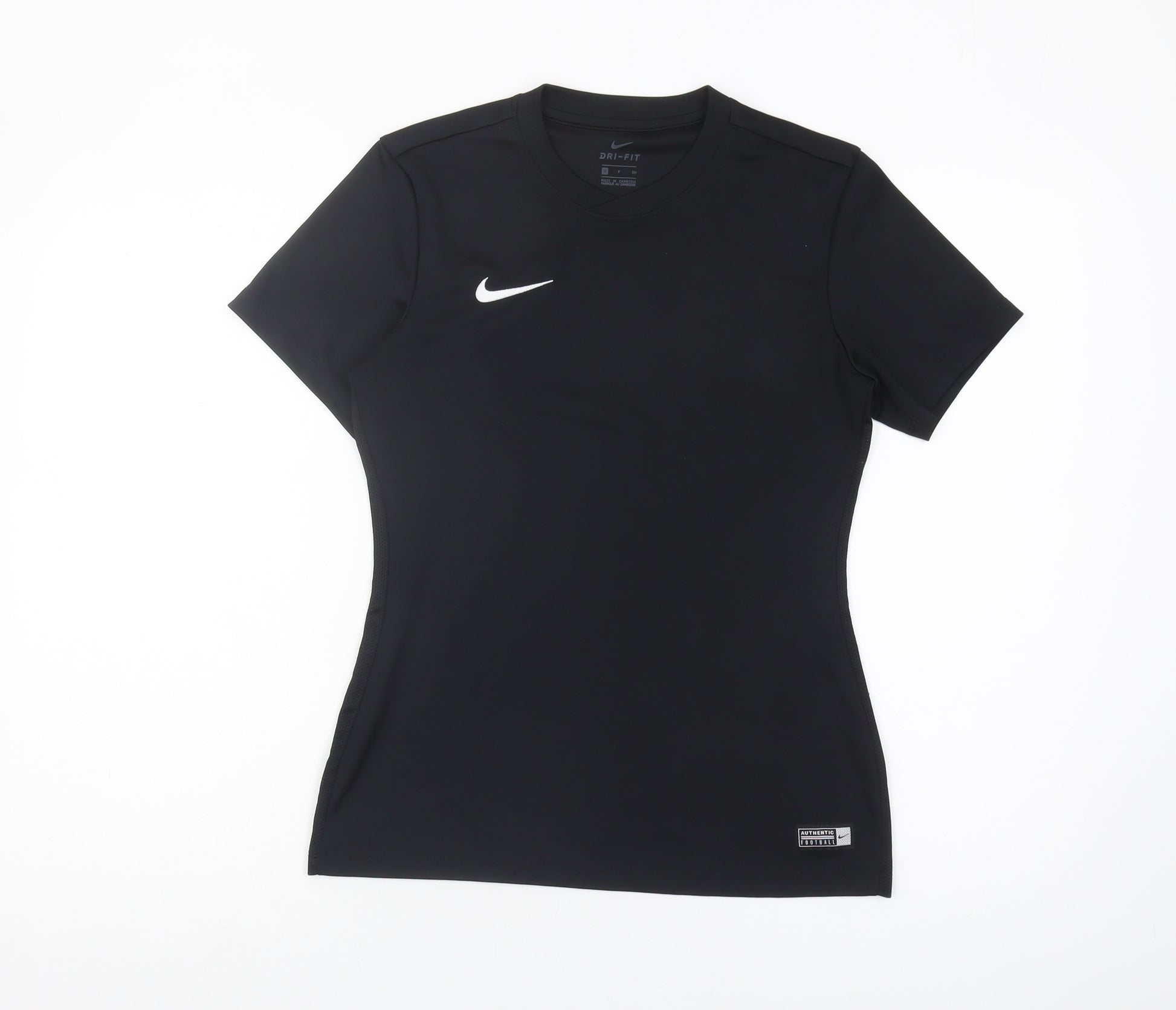 Elevate your workout with this sleek and stylish Nike women's T-shirt, designed for optimal performance. Crafted in a classic black colour, its modern athletic style is perfect for any gym session or training routine. With a slim fit, this short-sleeve tee embraces your figure while offering exceptional comfort. Made from 100% polyester, it features Nike's renowned moisture-wicking technology, ensuring you stay dry and comfortable no matter how intense your activity. The jersey fabric blend adds a touch of luxury and easy care, being machine washable for hassle-free maintenance. Designed for activewear, this piece seamlessly fits into any gym setting or casual training environment. Its crew neck and pullover closure provide a traditional yet sporty look. This versatile T-shirt caters to all seasons, making it a year-round favourite. Ideal for women who prefer a regular size fit, its solid pattern lends timeless appeal. With an excellent condition and no visible flaws, it makes a practical, durable addition to your activewear collection. Experience the renowned quality that comes from the Nike brand at an affordable price, designed to support your every move in the most flattering and functional way.