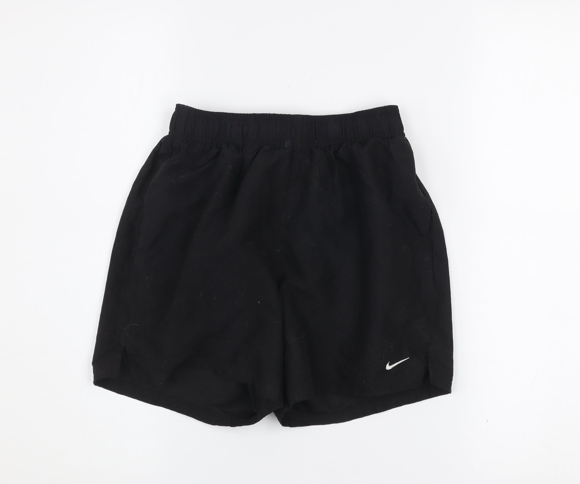 These Nike women’s activewear shorts are a versatile training essential designed for comfort and performance. Crafted from lightweight and breathable 100% polyester fabric, they provide excellent ventilation and quick-drying properties, keeping you cool and comfortable even during the most energetic workouts. The classic black colour gives these shorts a stylish and sleek look, perfectly suited for any active outfit. They feature a soft, elasticated waist for a secure and comfortable fit that flexes with your movements, making them ideal for running, fitness sessions, gym workouts, or casual wear. The moisture-wicking properties help to draw sweat away from the body, ensuring you stay dry as you train. With an easy-care finish, these shorts are machine washable and quick to dry, providing maximum convenience for your active lifestyle. Their simple yet functional design includes minimal detailing, featuring the small Nike swoosh logo for a subtle sporty finish. Made in Indonesia with imported materials, these shorts are designed to meet high standards of durability and practicality. In very good pre-owned condition, they show only light signs of wear and remain in excellent shape overall. Ideal for those who value a combination of comfort, performance, and timeless athletic style, these shorts deliver the dependable quality that Nike is known for. Perfect for warm weather training, yoga, or lounging, they are an essential piece for both sports enthusiasts and everyday comfort seekers alike. Update your activewear wardrobe with these dependable Nike shorts that combine sporty appeal with exceptional everyday wearability. Grab this athletic staple that ensures you stay comfortable, active, and effortlessly stylish.