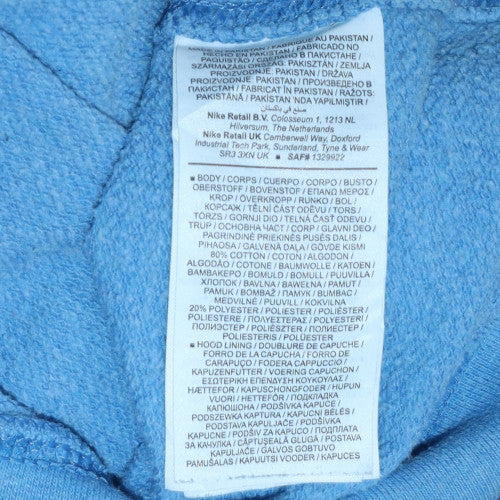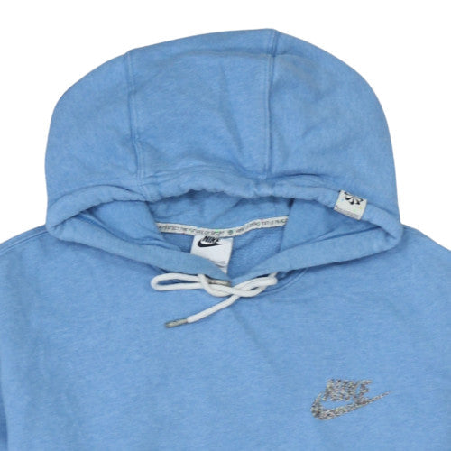 Stay effortlessly stylish and comfortable in this classic Nike women's pullover hoodie, designed for everyday wear and built to last. Made from a soft cotton-polyester blend, this hoodie offers exceptional comfort with a smooth exterior and cozy interior lining to keep you warm. The light blue hue adds a refreshing, versatile tone to your wardrobe that works perfectly across all seasons. Featuring a drawstring hood for adjustable coverage and a front kangaroo pocket for both functionality and style, it combines practicality and a sporty aesthetic effortlessly. The iconic Nike embroidered logo at the chest adds a statement of quality and timeless fashion appeal.This hoodie’s ribbed cuffs and hem provide a secure, flattering fit that holds its shape throughout wear. With its relaxed yet slightly contoured silhouette, it delivers just the right balance between casual ease and athletic fit, ideal for workouts, lounging, or layering on cooler days. The soft fleece inner finish ensures warmth without added bulk, making it suitable for layering under jackets during colder months or wearing on its own in spring or autumn.Perfect for women leading active lifestyles, this Nike hoodie can seamlessly transition between gym sessions, casual outings, or relaxed weekends. Its easy-care, machine-washable fabric makes maintenance simple, while the fabrication provides durability that withstands frequent wear. Whether paired with jeans, joggers, or leggings, this piece becomes a dependable wardrobe staple offering both comfort and sport-inspired style.Condition is excellent with minimal signs of wear, maintaining strong colour integrity and fabric texture. A reliable, fashionable choice for those seeking quality sportswear with a timeless design from a trusted brand.