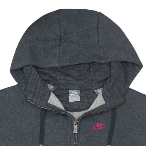 Stay effortlessly stylish and comfortable in this Nike Sportswear women’s quarter zip hoodie. Designed in a soft charcoal grey fleece, this piece combines casual appeal with an athletic edge, making it perfect for daily errands, lounging, or light outdoor activities. The relaxed yet flattering fit ensures easy layering, while the ribbed hem and cuffs provide added structure and a snug feel. Crafted for breathable comfort, the hoodie features a cosy lined hood with adjustable drawstrings and a convenient front kangaroo pocket for warmth and storage. The understated grey tone is complemented by a subtle pink Nike logo embroidered on the chest, adding a pop of sporty charm. The half zip neckline not only enhances the look but also allows for ventilation and easy wear. This hoodie delivers modern versatility for any season—ideal with jeans for laid-back weekends, or paired with leggings for a sporty casual vibe. Whether for a relaxed workout, a quick walk, or just daily comfort, it’s a wardrobe staple that blends functionality, quality, and timeless design. Expertly made from a soft cotton and polyester blend, it offers excellent durability and shape retention wash after wash. Although gently used, it remains in excellent condition with minimal signs of wear and retains its original fit and colour. Perfect for those seeking an authentic Nike piece that pairs performance with street style ease. Add this grey pullover to your wardrobe and enjoy Nike’s trusted comfort and sporty aesthetic season after season.