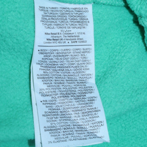 Stay stylish, comfortable, and effortlessly sporty with this Nike Women's Green Logo Pullover Sweatshirt. Crafted from a soft cotton blend for all-day wear, this sweatshirt embodies Nike’s iconic sporty style. Featuring a relaxed fit and a crew neckline, it offers warmth and breathability perfect for cooler seasons. The eye-catching mint green base is complemented by bold 'NIKE' branding across the chest in pink and white, giving it a vibrant, youthful look. The ribbed cuffs and hem create a snug fit that keeps warmth in while maintaining shape wash after wash. Made with 80% cotton and 20% polyester, this sweatshirt ensures durability and a soft touch fabric that feels great on the skin. The fleece interior adds an extra layer of comfort, making it ideal for everyday casual wear, lounging, or layering with your favourite jeans and trainers for a laid-back, sporty outfit. Whether you’re heading out for a walk, attending a casual gathering, or just relaxing at home, this Nike sweatshirt delivers a timeless athletic aesthetic that works for every wardrobe. Designed for women and teens alike, this medium-size piece offers a flattering, relaxed fit that’s both modern and practical. Perfect for spring, autumn, and winter wear, it’s an easy addition to your casual rotation for effortless style. The green tone gives it a fresh and uplifting touch that pairs beautifully with neutral or contrasting colours. Add this authentic Nike sweatshirt to your wardrobe and enjoy premium comfort, high-quality construction, and that unmistakable Nike flair that never goes out of style.