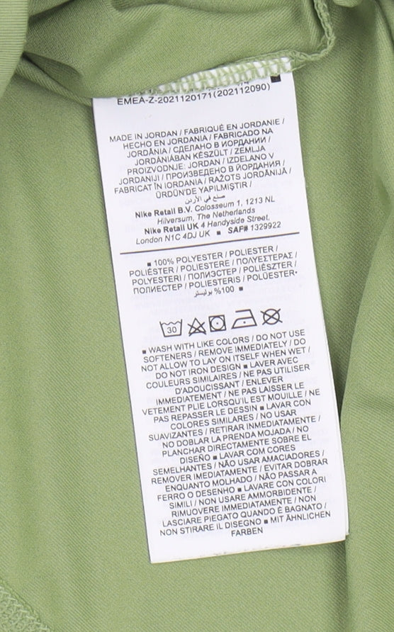 Elevate your workout game with this Nike Women's Long Sleeve Athletic Top in a refreshing green shade. Designed for the modern active woman, this top is made from 100% polyester, ensuring it's lightweight and breathable, ideal for both running and gym training. The athletic fit of this pullover style top provides comfort and flexibility, perfect for enhancing your performance. Featuring moisture-wicking technology, it keeps you dry and comfortable during intense workouts. The crew neckline and fitted sleeves offer a classic look, while the solid colour adds a touch of simplicity and style. This top is machine washable, making it easy to care for, and suitable for all seasons. Whether you're hitting the gym or going for a jog, this top offers the perfect blend of style and function. Brand new with tags, it promises quality and durability. A fantastic choice for your activewear collection, enticing you to stay active and look great.