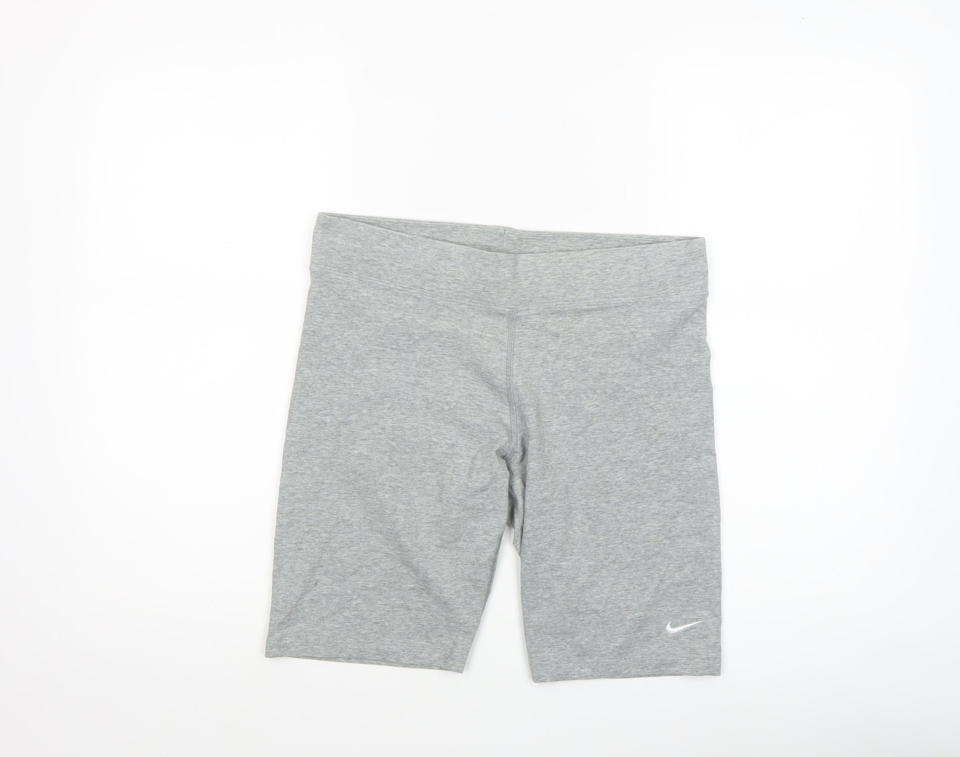 Womens Grey Biker Activewear Shorts L Stretch Slim Fit