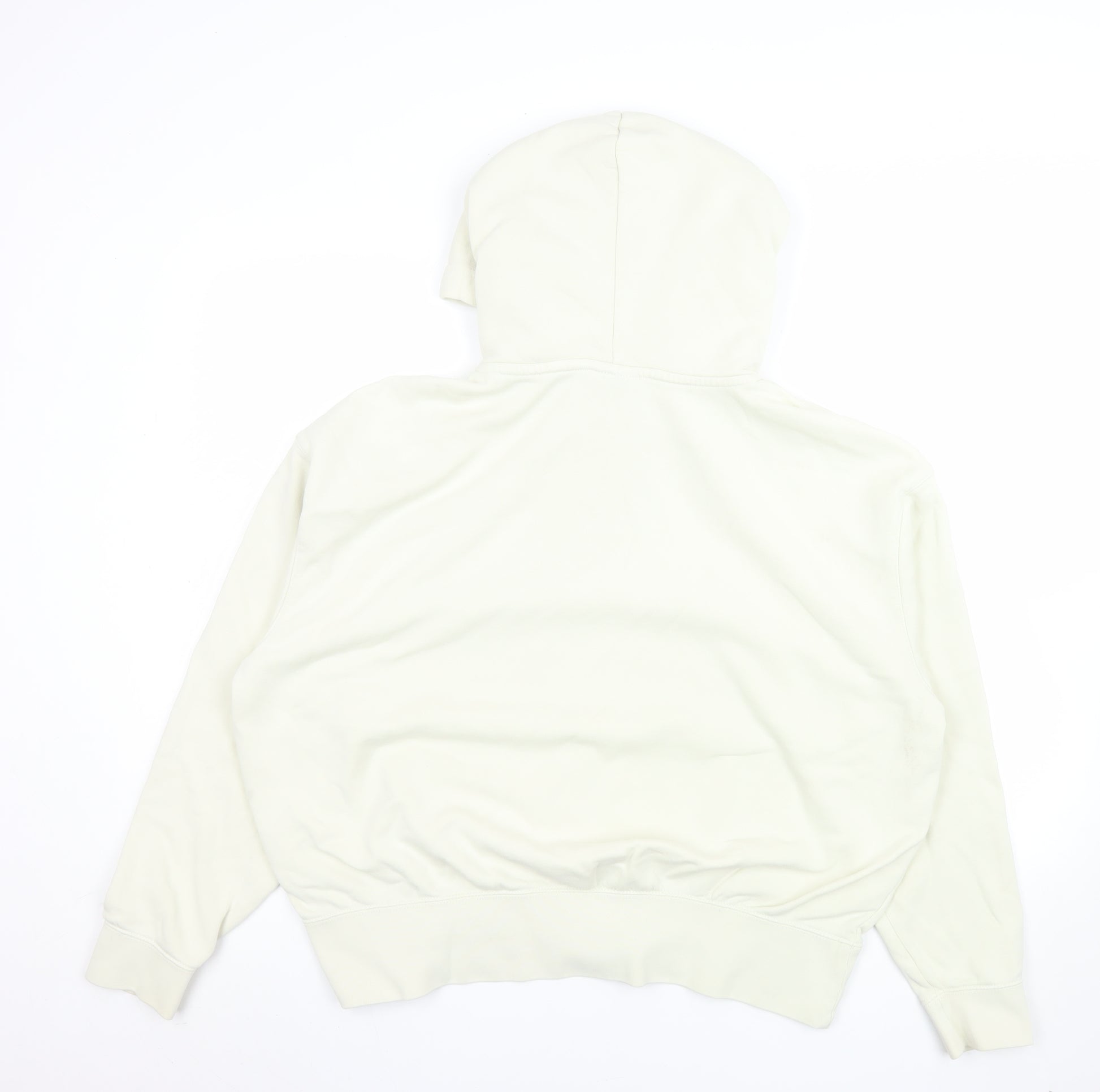 Stay comfortable and stylish in this Nike women’s ivory pullover hoodie, crafted from a soft fleece blend of cotton and polyester for extra warmth and comfort. Designed in a flattering regular fit, this premium hoodie features a drawstring hood, a ribbed hem, and cuffs for a cosy and secure feel. The subtle Nike logo accent at the chest adds a touch of sporty authenticity, making it a perfect everyday essential for casual wear or light training. The neutral ivory colour pairs effortlessly with jeans, joggers, or leggings, offering both versatility and comfort. Ideal for layering across seasons, this hoodie is suited for autumn, winter, and spring, blending relaxed streetwear style with classic athletic appeal. Whether you’re lounging at home, heading to the gym, or running errands, this Nike hoodie provides practical warmth without compromising on design. Made with a soft lining and breathable fleece material, it ensures lasting wear throughout the day. Though gently worn with minor markings on the lower area, it remains in very good condition — fresh, soft, and ready for daily use. A durable and easily washable garment that combines premium Nike quality and modern casual aesthetic. Perfect for those who appreciate minimalist sportswear with a clean, modern edge.