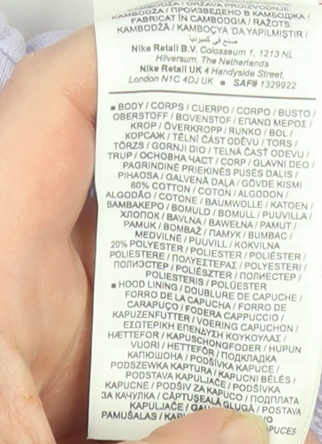 Nike Women's Purple Pullover Hoodie Size L Cotton Blend