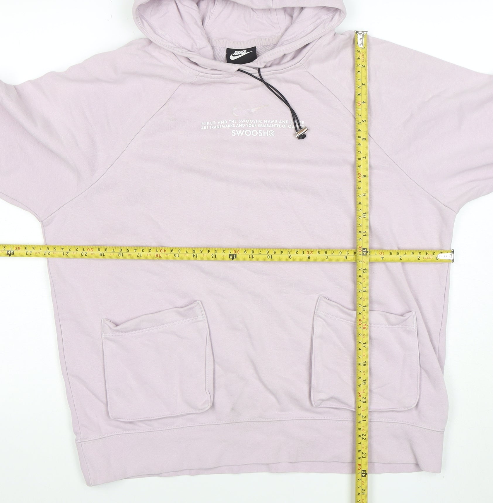 Stay effortlessly stylish and comfortable with this Nike women's pullover hoodie in a soft lilac shade. Designed with a relaxed fit, it’s perfect for casual wear, training sessions, or lounging. Crafted from a high-quality blend of cotton and polyester, the hoodie provides a smooth touch on the outside and a softly brushed interior that ensures warmth and comfort throughout wear. The material composition of 80% cotton and 20% polyester offers breathable yet durable performance. The pullover design with a secure hood and adjustable drawstring gives a snug feel for cooler days, while the front pouch pockets add practicality and an urban edge. Its clean and minimal look is elevated by Nike’s iconic swoosh and branding detail printed across the chest, giving it that recognisable sporty-luxe aesthetic. Ideal for all-season wear, this hoodie pairs beautifully with jeans, leggings or joggers, making it a go-to staple for an active and stylish wardrobe. Whether you wear it for a morning jog, a relaxed day out or simply lounging, this comfy piece will keep you looking effortlessly cool. This pre-owned item is in excellent condition with minimal signs of wear, showing only slight creasing typical of cotton garments. The mid-weight fabric, combined with subtle lilac tones, offers an understated yet modern look that fits seamlessly into any outfit rotation.