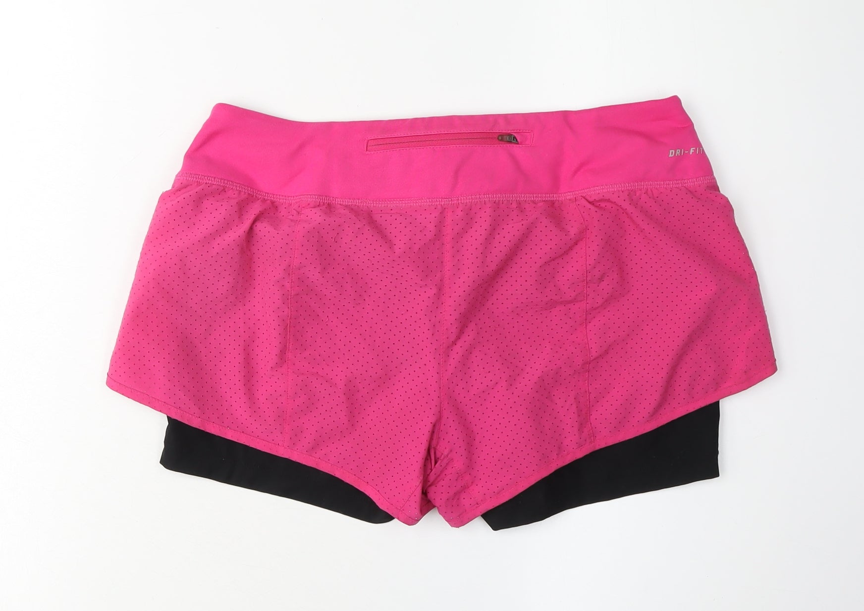 Elevate your activewear wardrobe with this vibrant pink Nike skort, perfect for women who are always on the move. Designed with an athletic fit, this versatile skort combines the practicality of shorts with the style of a skirt, making it ideal for running, jogging, and gym sessions. Crafted from breathable polyester and elastane fabric, it ensures comfort and flexibility during your most intense workouts.This skort features moisture-wicking technology to keep you dry, while its pull-on closure offers ease and convenience. The lightweight jersey fabric and seamless design enhance mobility, providing an unrestricted range of motion. Its short length and bold colour add a trendy touch to any outfit, making it suitable for various active occasions. Whether you're hitting the trails or the treadmill, this skort will keep you stylish and supported.In excellent condition with no visible signs of wear or damage, this Nike skort promises durability and long-lasting use. Machine washable for easy garment care, it caters to the modern woman who values both style and functionality. Priced at a competitive £20.00, it offers great value for an essential piece of activewear. Don’t miss out on adding this must-have skort to your collection, ensuring you look and feel your best during every workout.